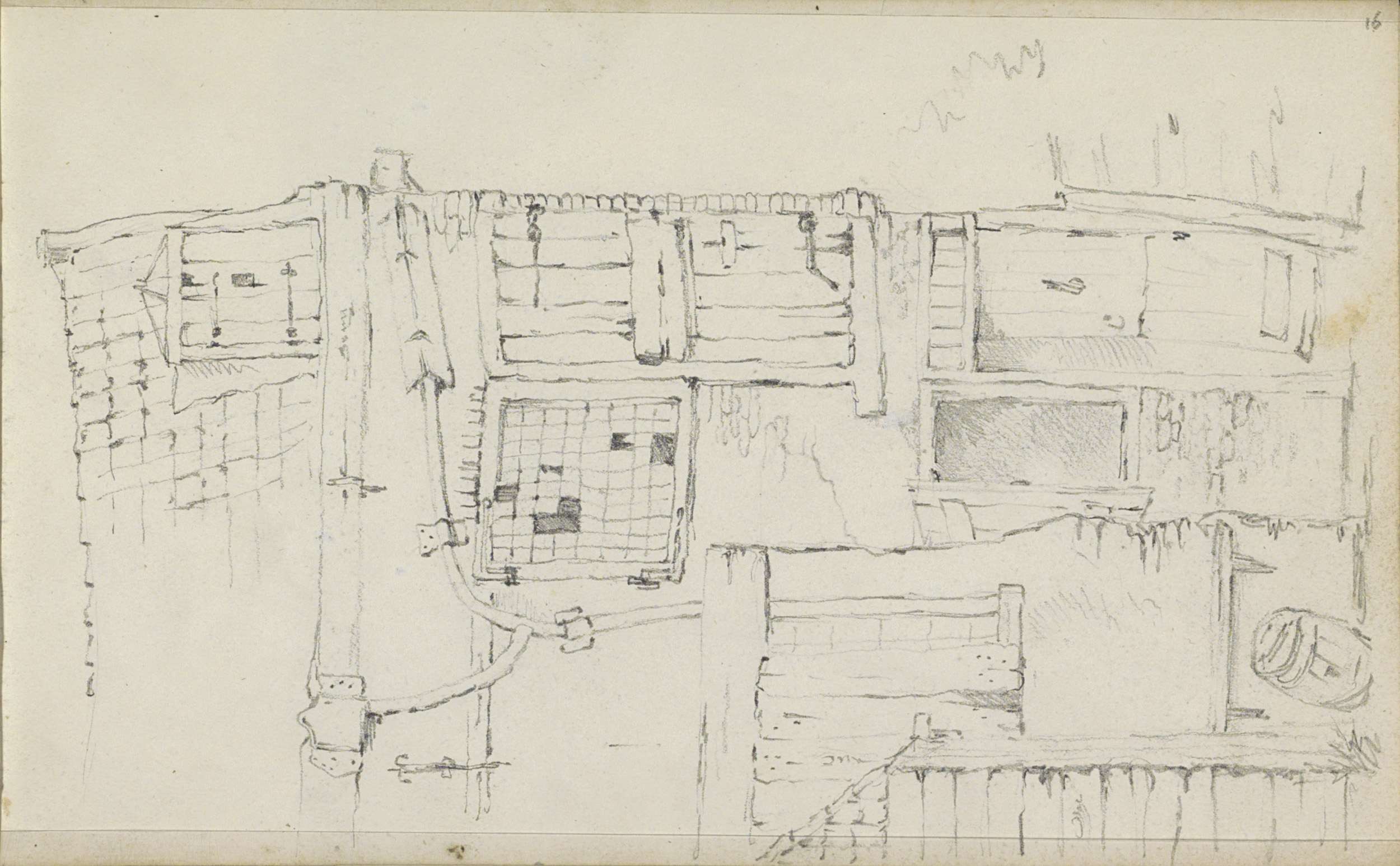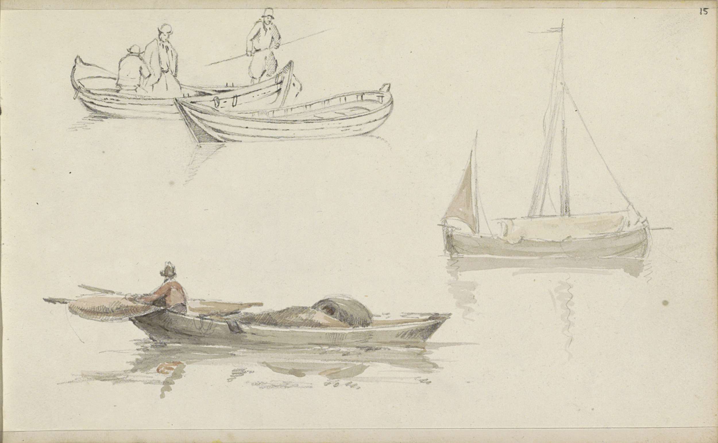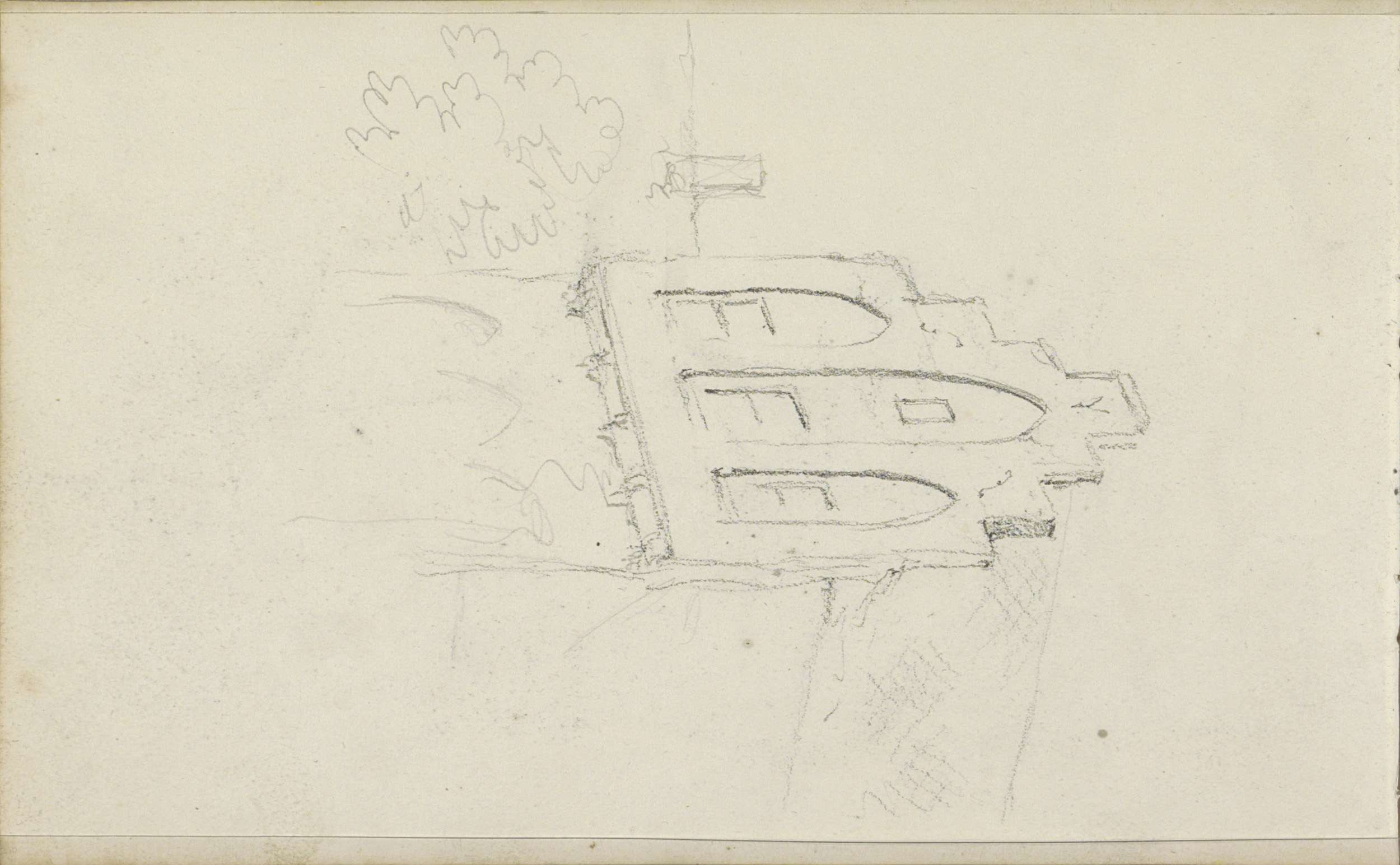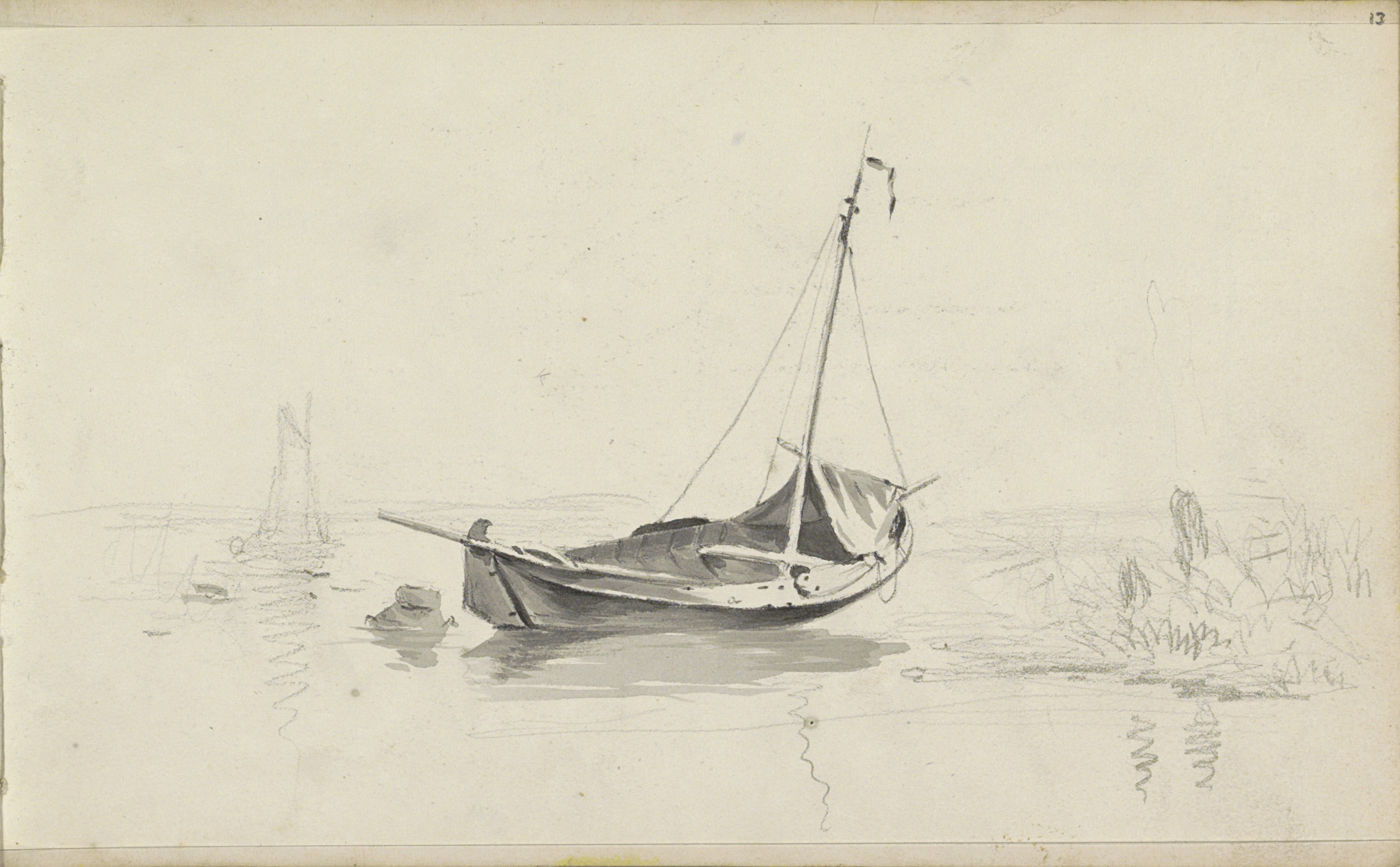 Studieblad met onderdelen van een zeilschip