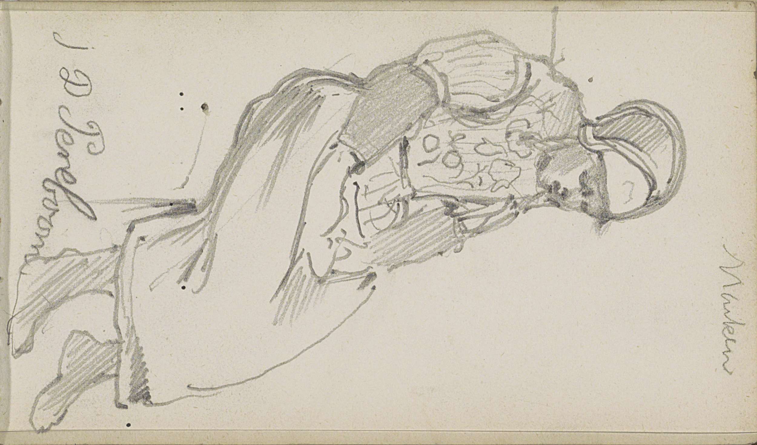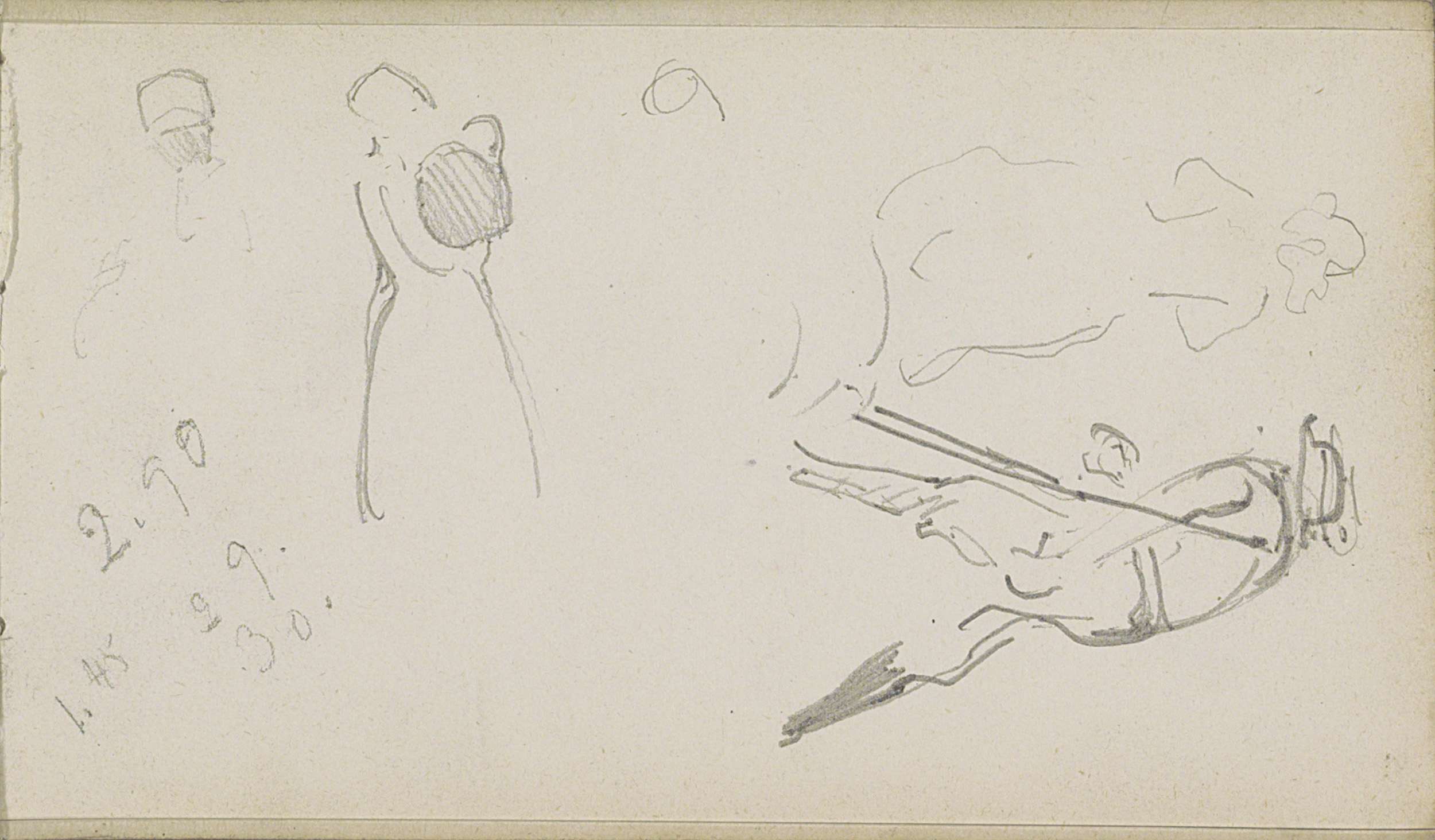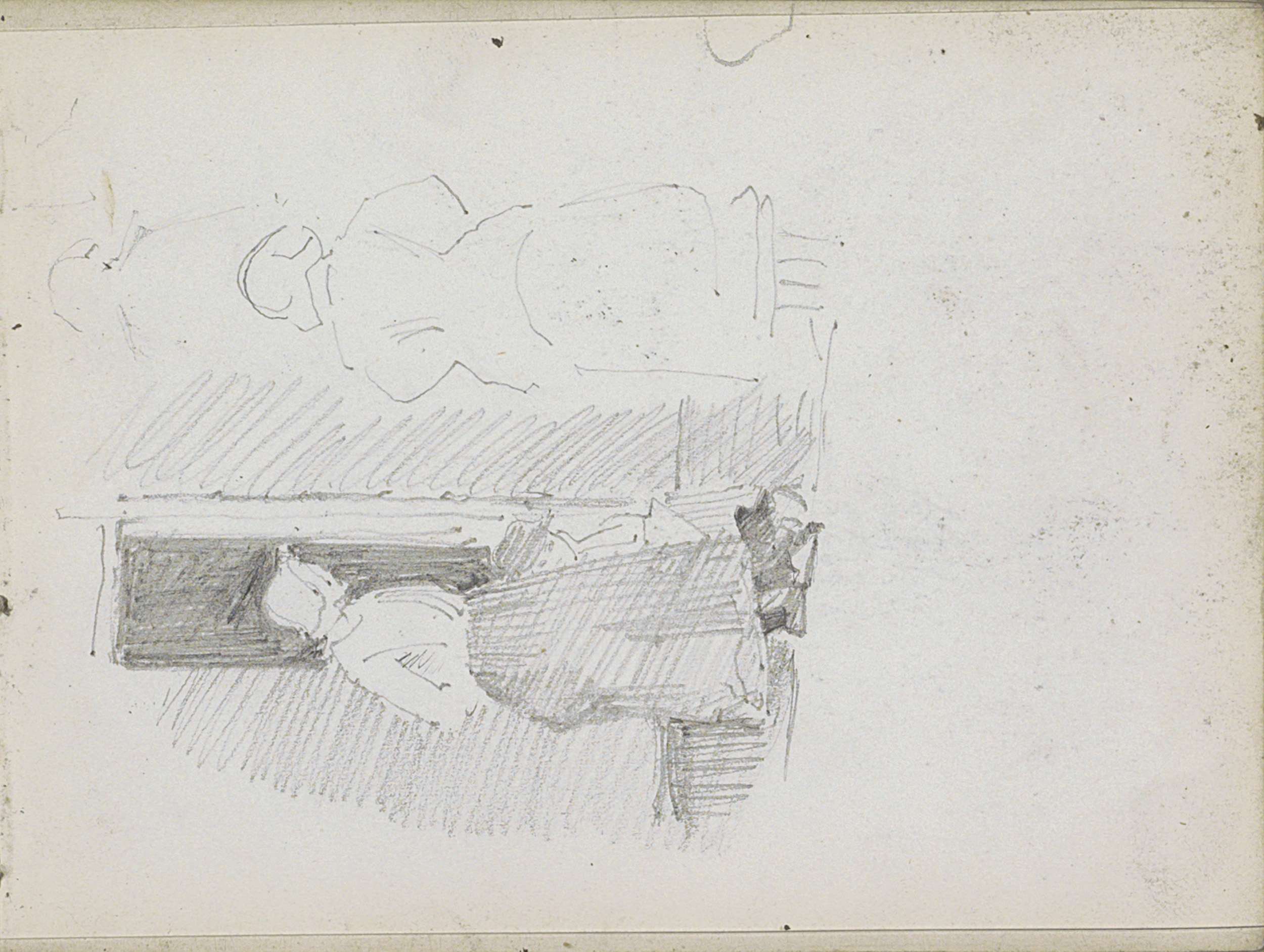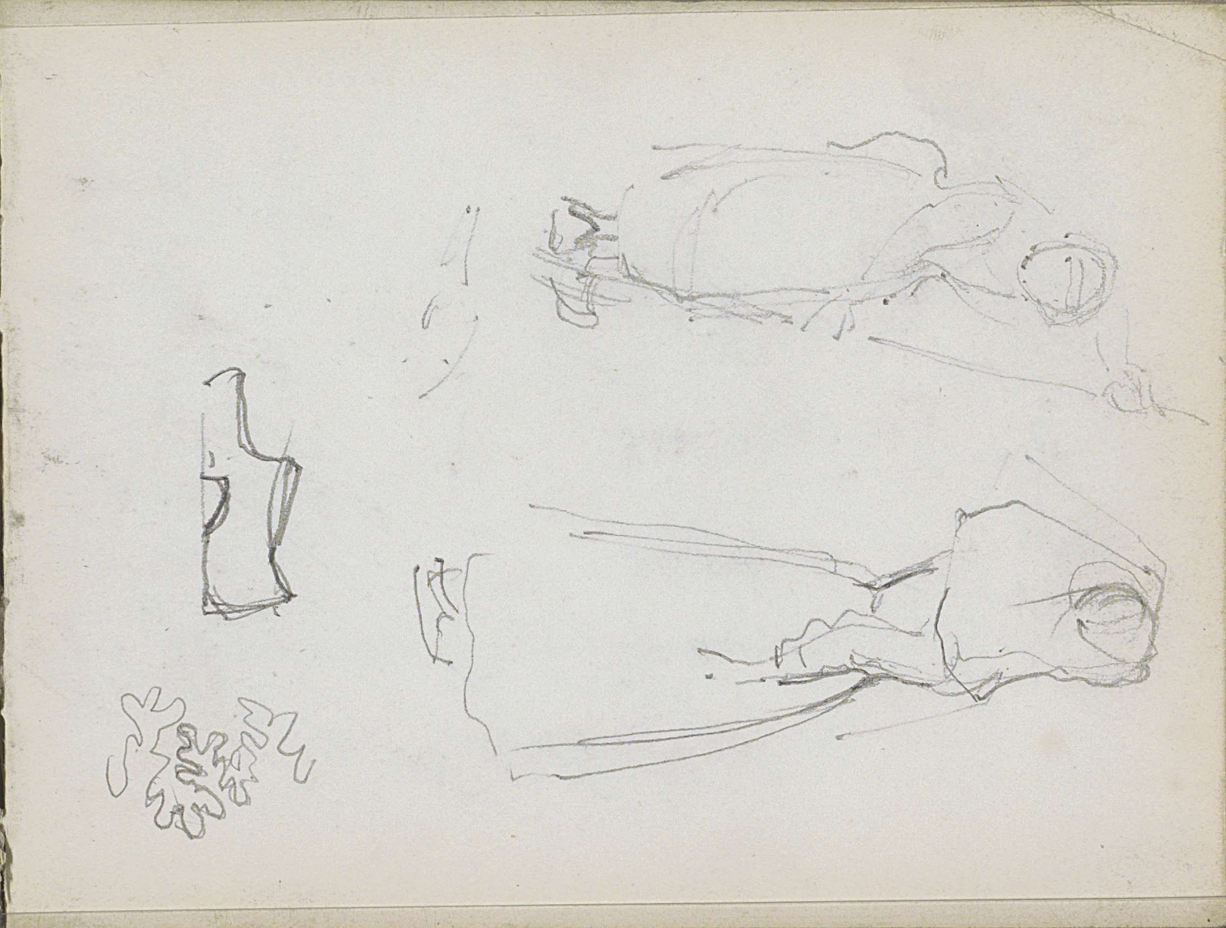 Figuur en een leeuwenkop, vermoedelijk naar een beel...