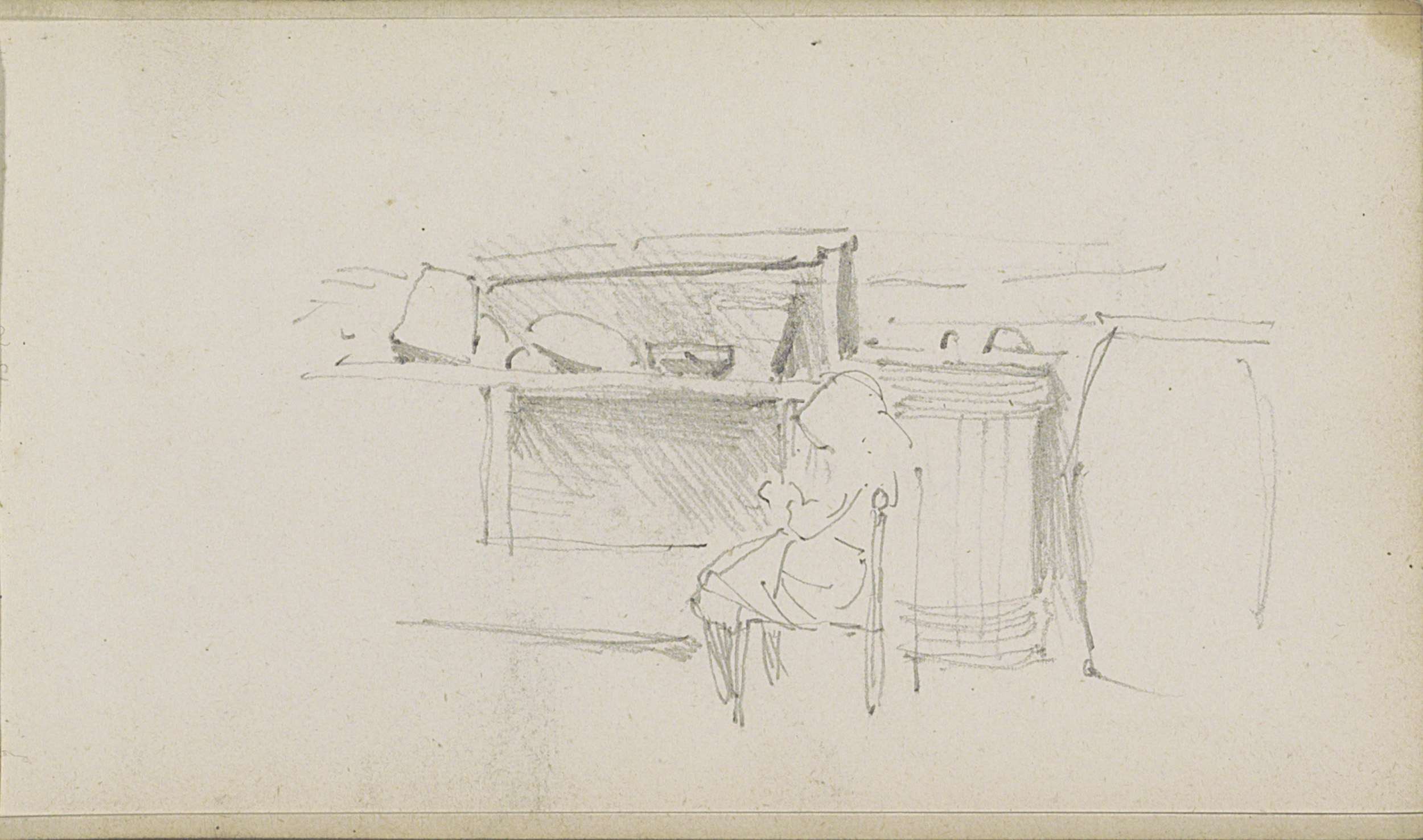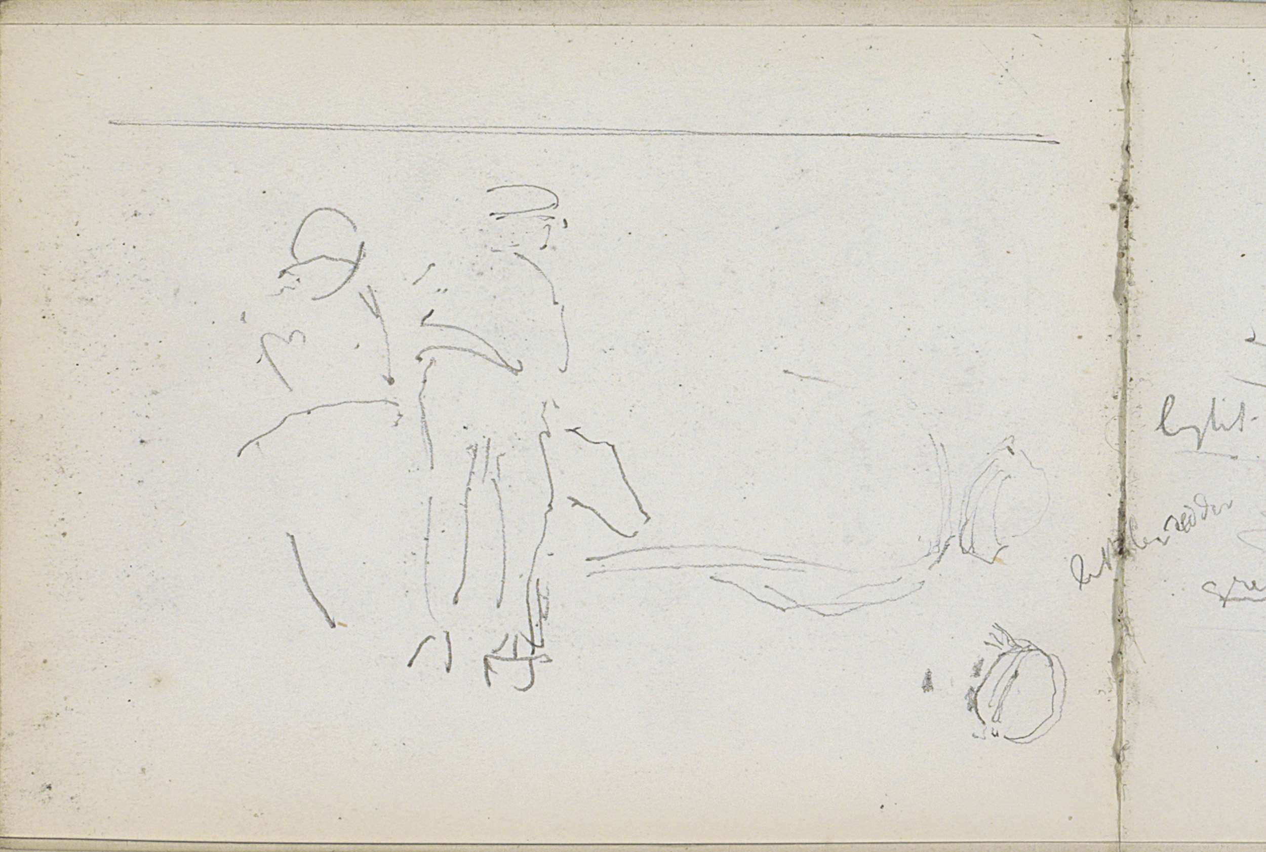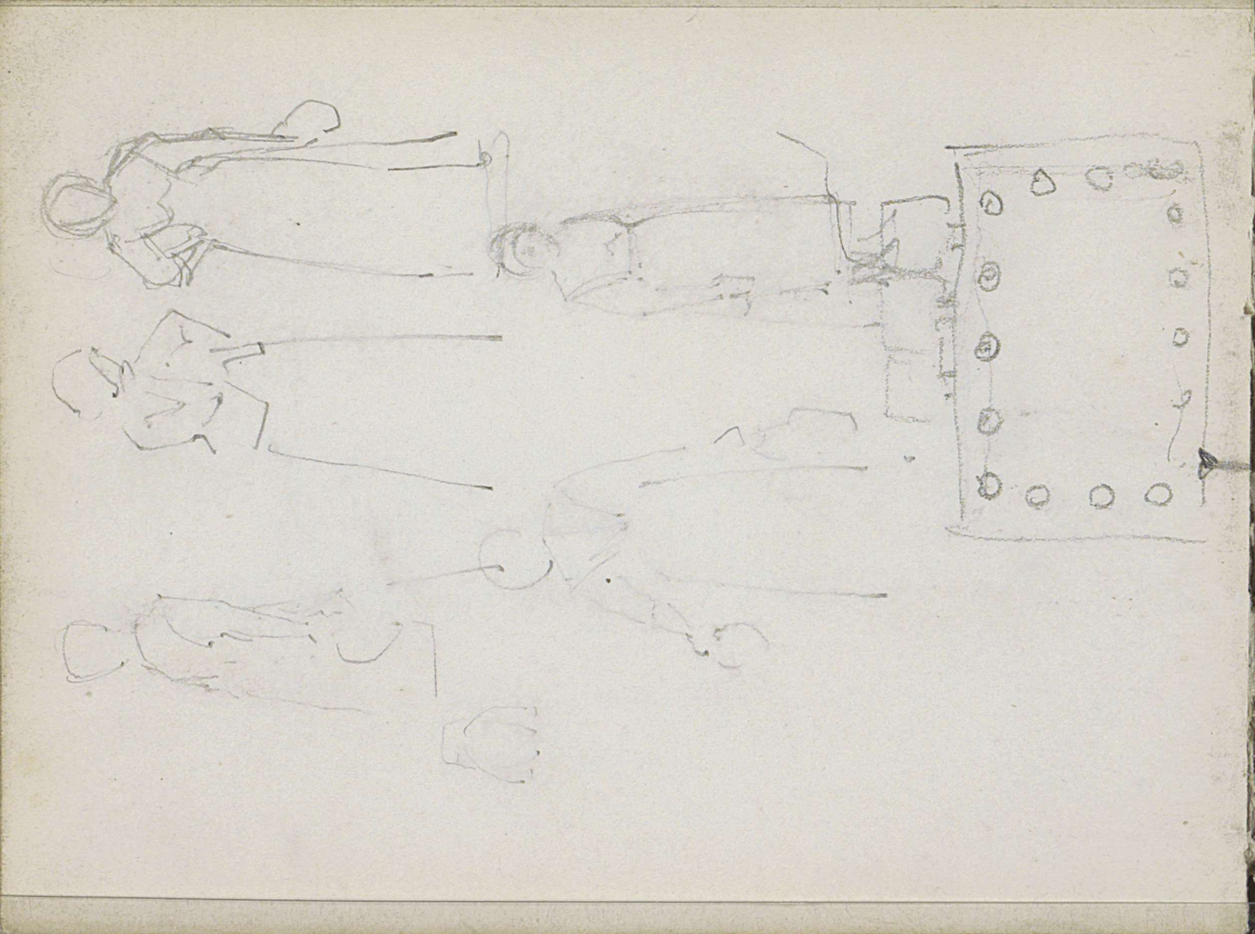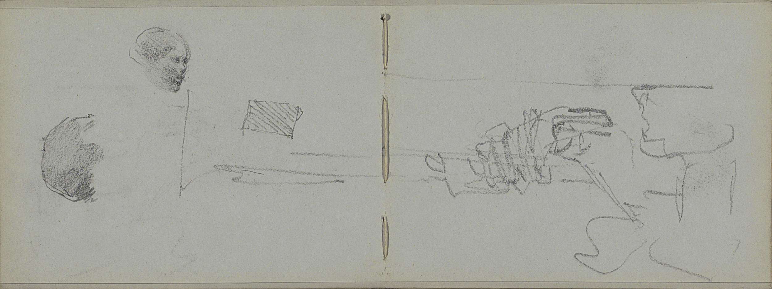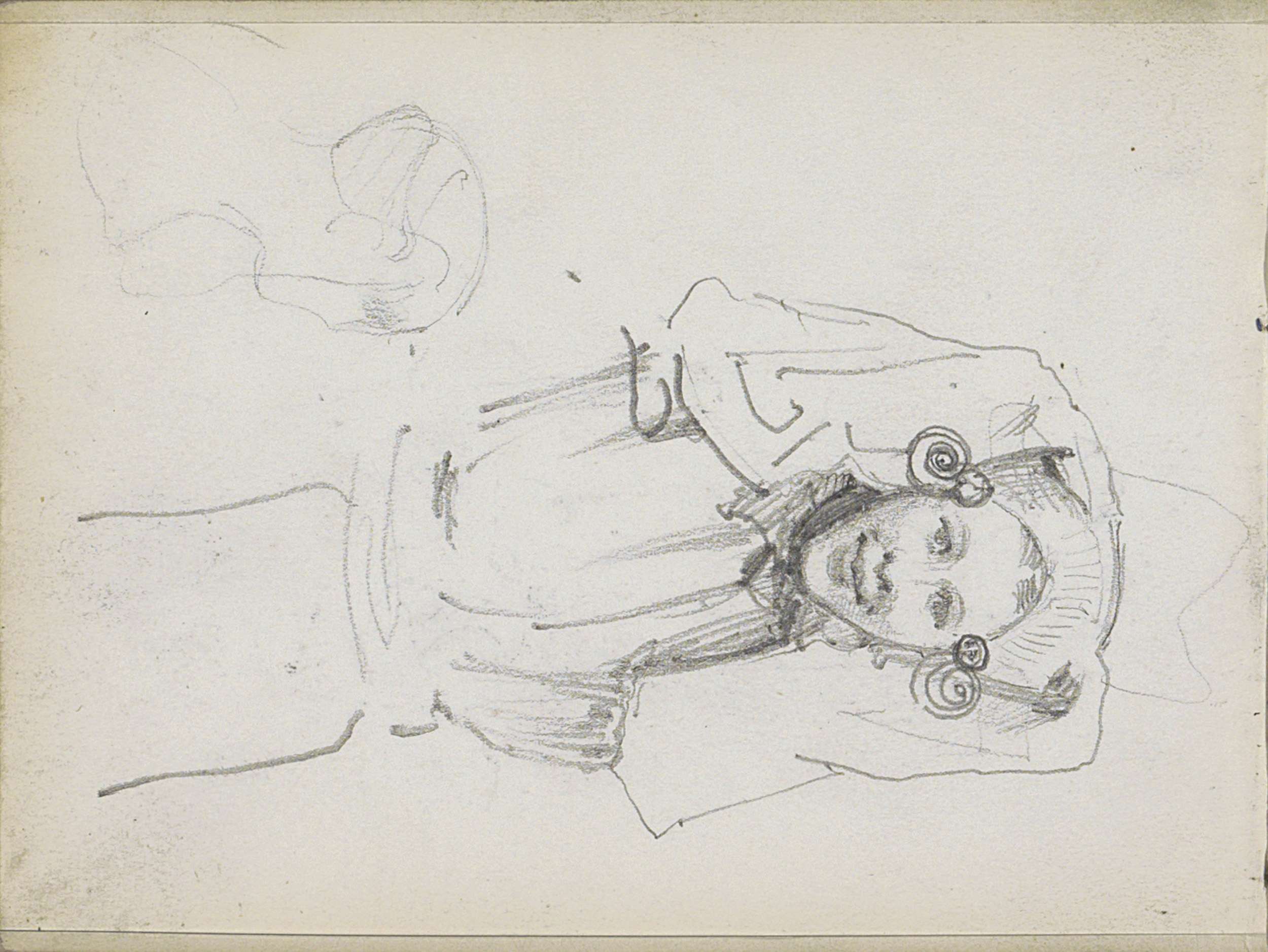Figuur en een leeuwenkop, vermoedelijk naar een beel...