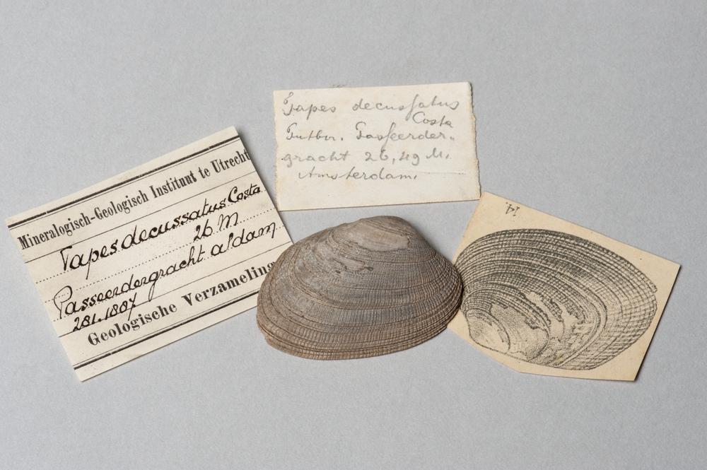Schelp, Tapes decussatus, uit een boring in de Passe...