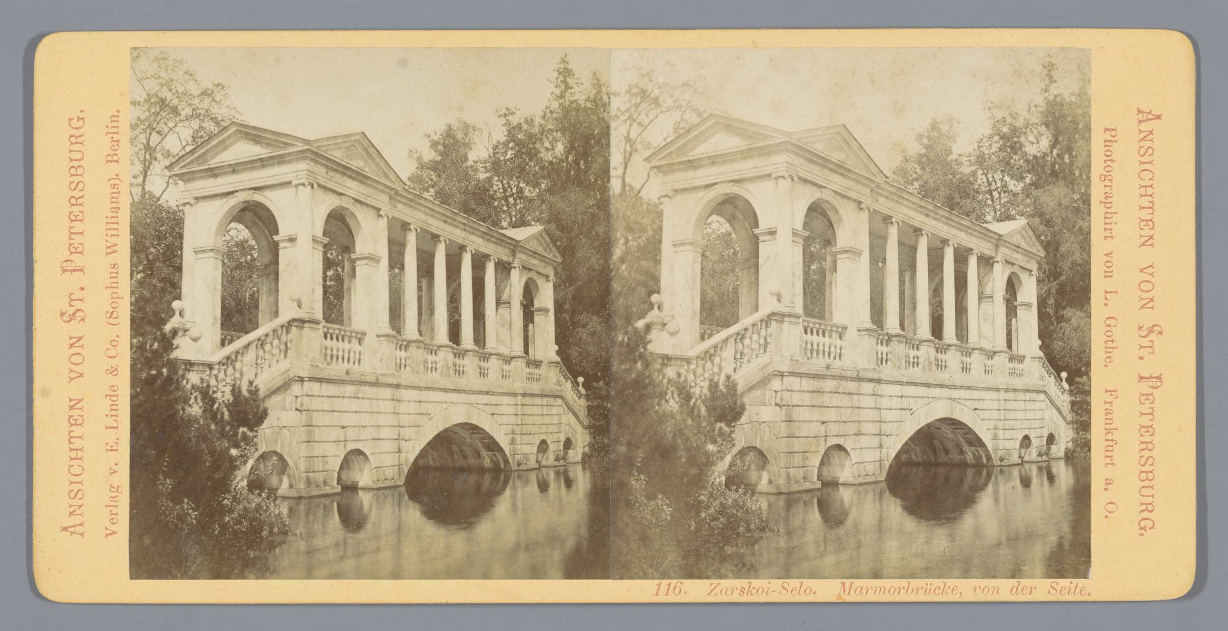 Gezicht op een marmeren brug in het Catharinapark in...