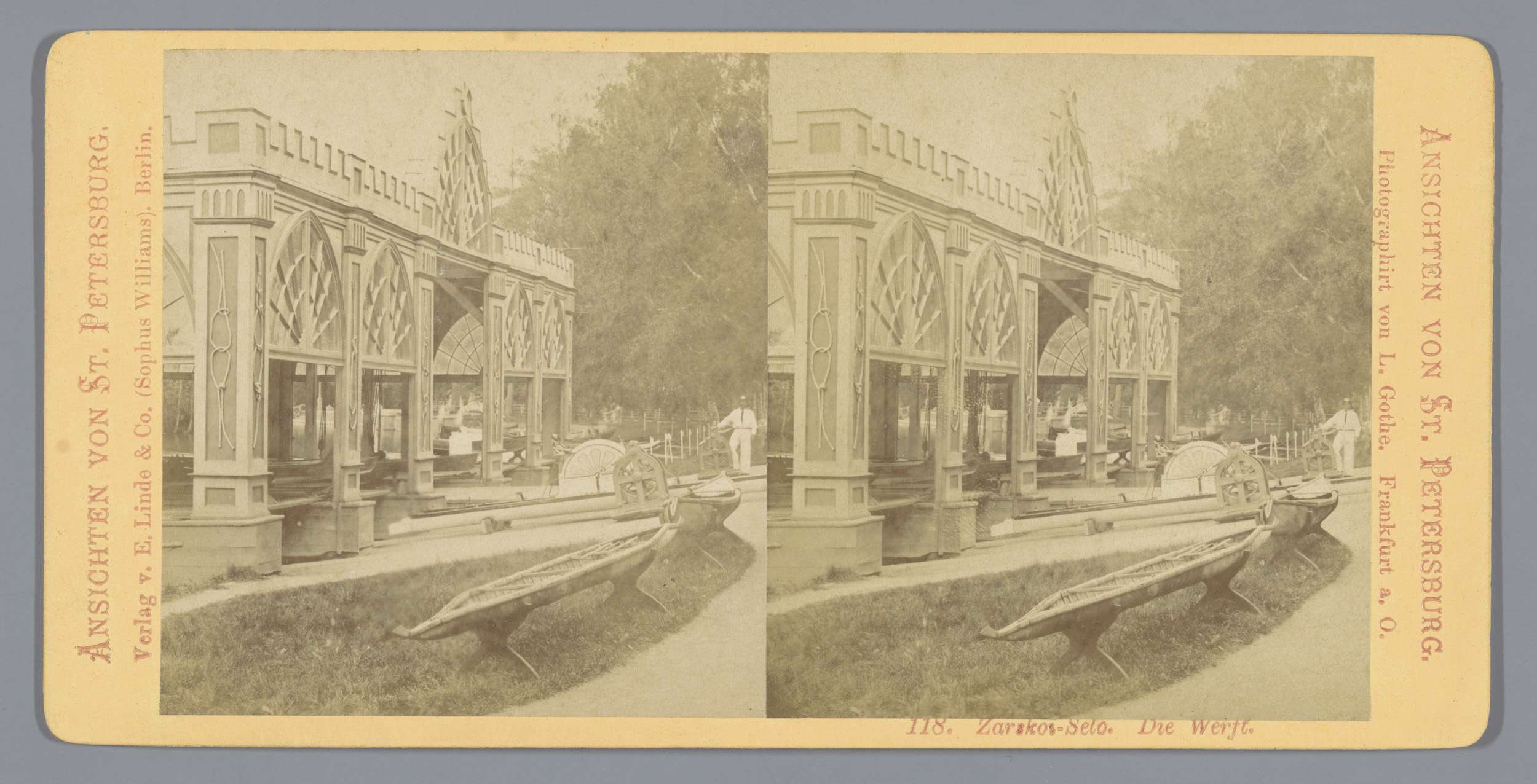 Scheepswerf in Tsarskoje Selo met boten ervoor