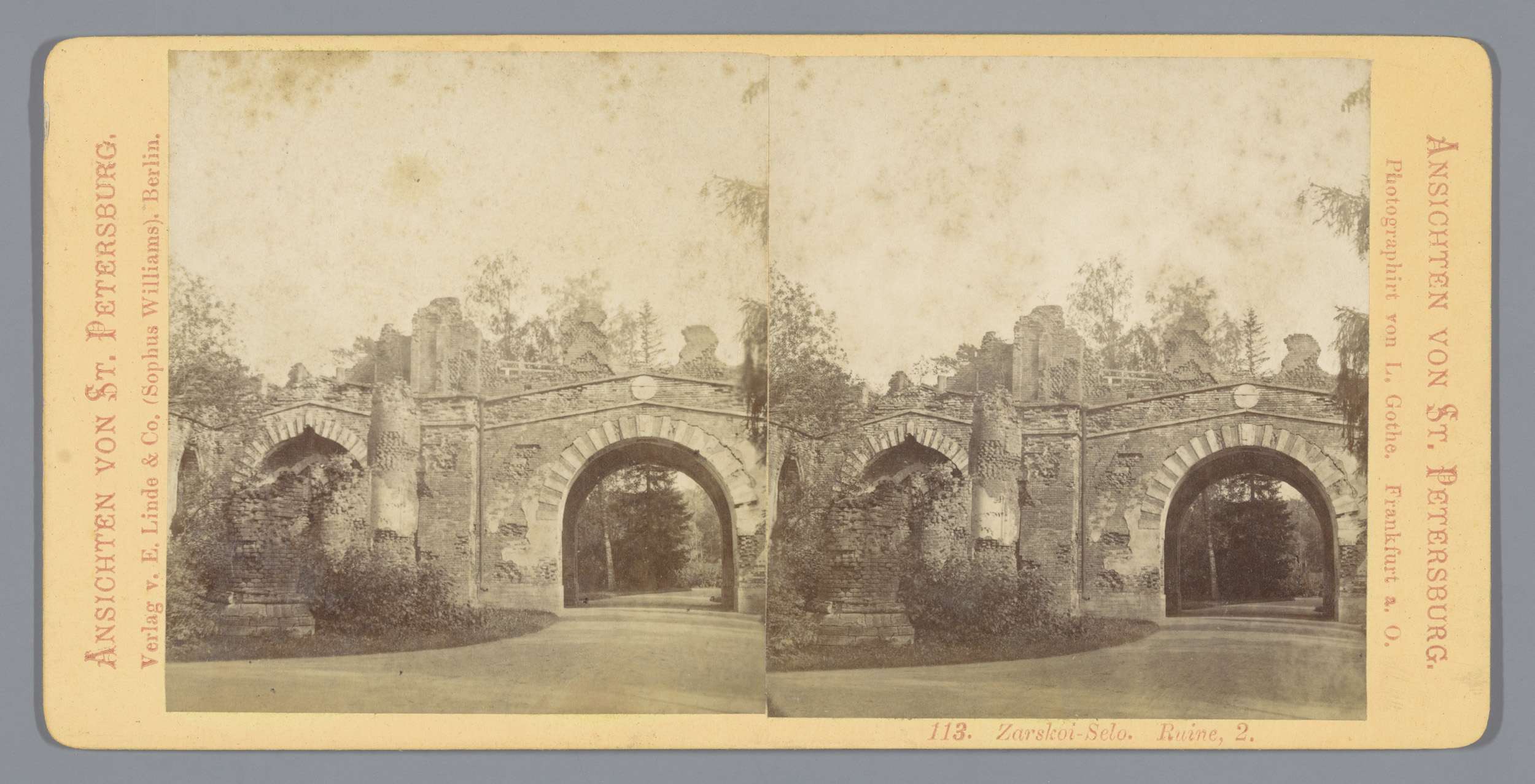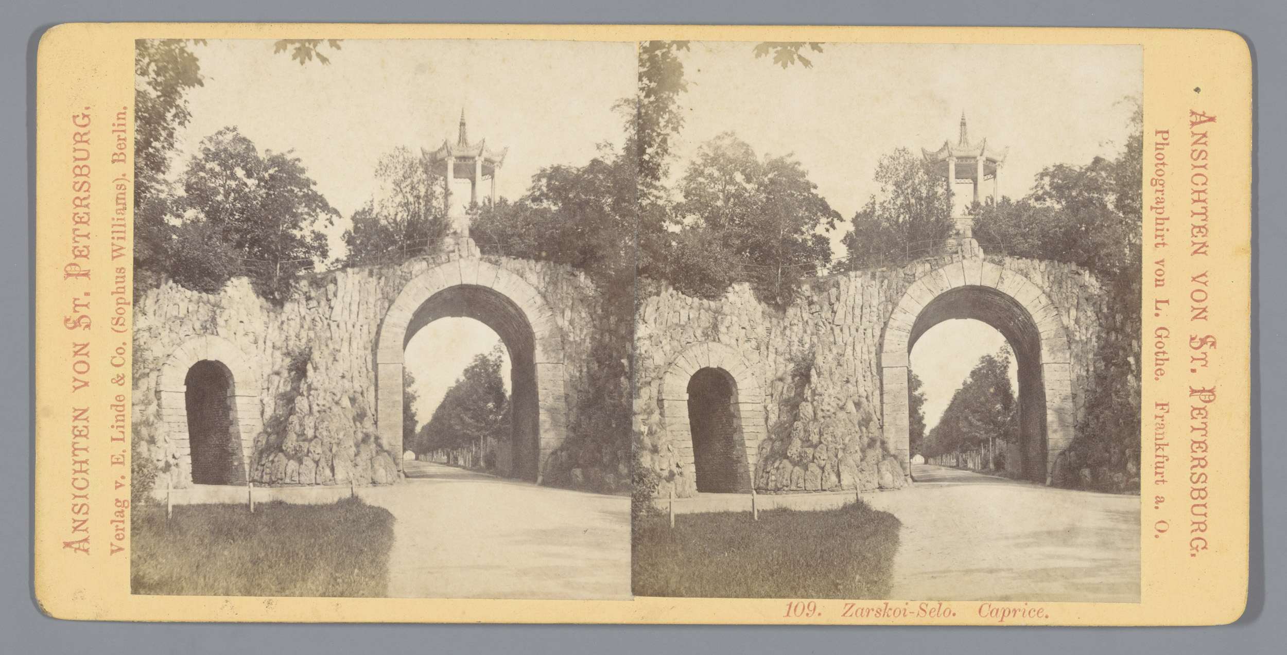 Gezicht op een boog in het Catharinapark in Tsarskoj...