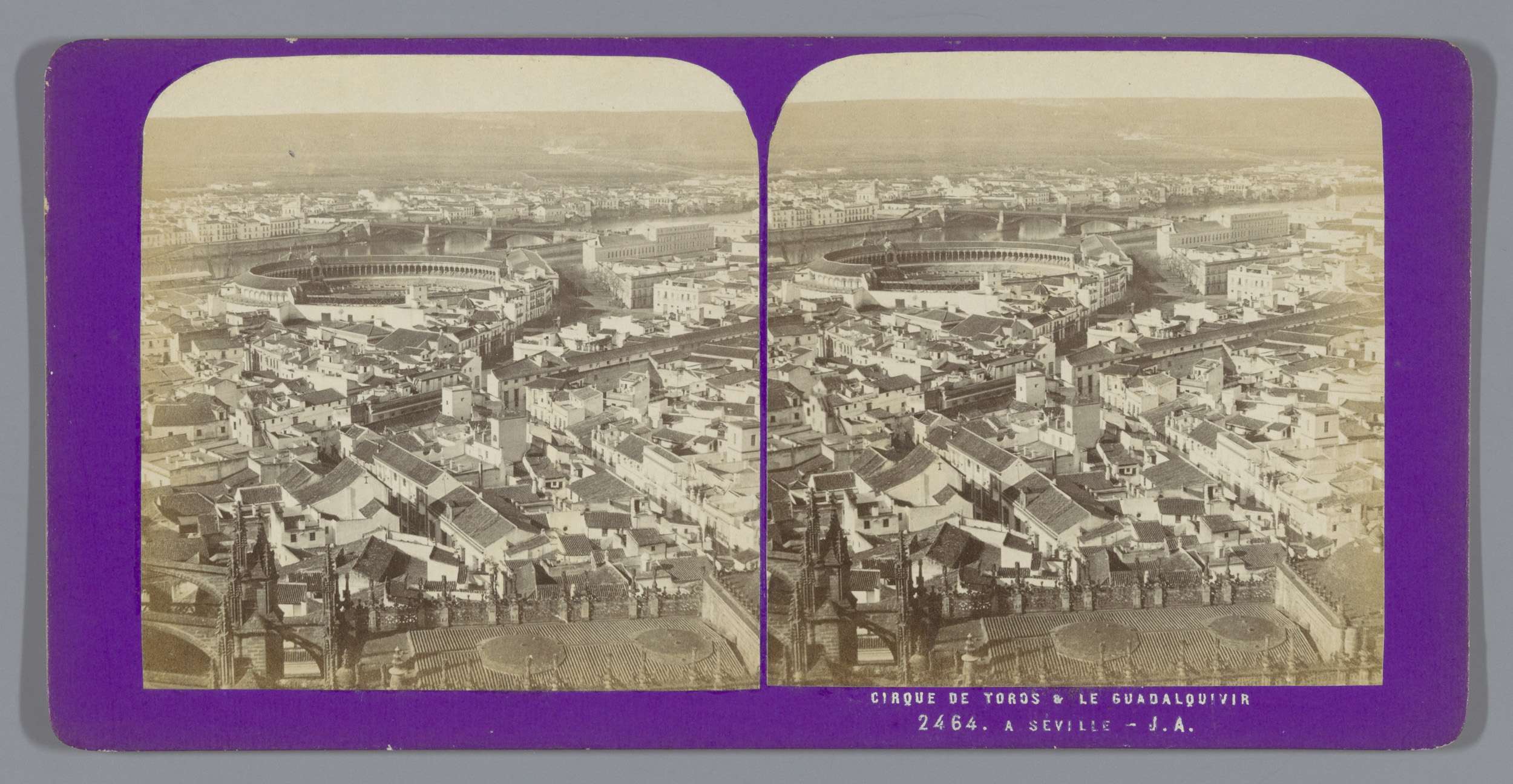 Gezicht op Sevilla met het Plaza de Toros en de Guad...