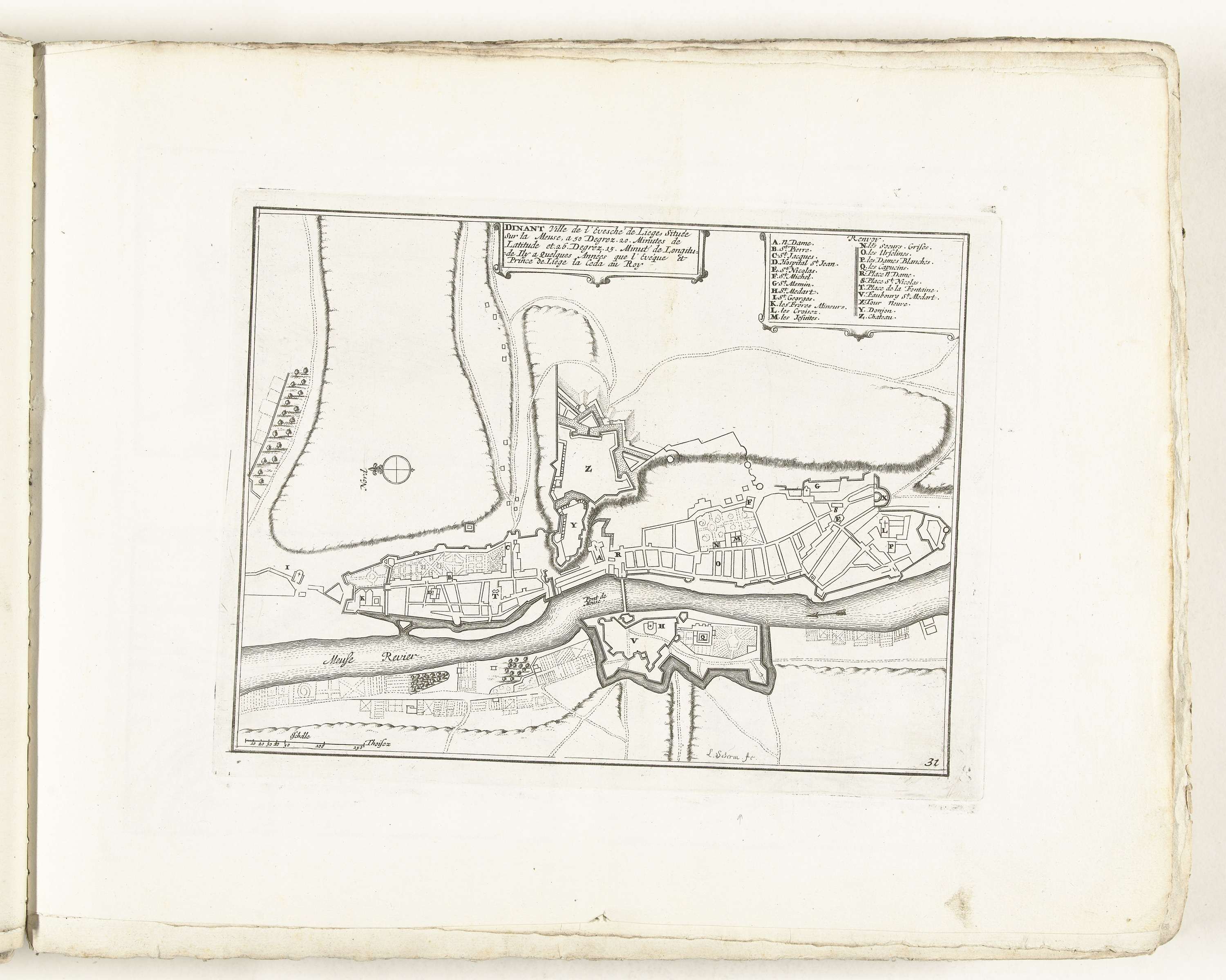 Plattegrond van Dinant, ca. 1702