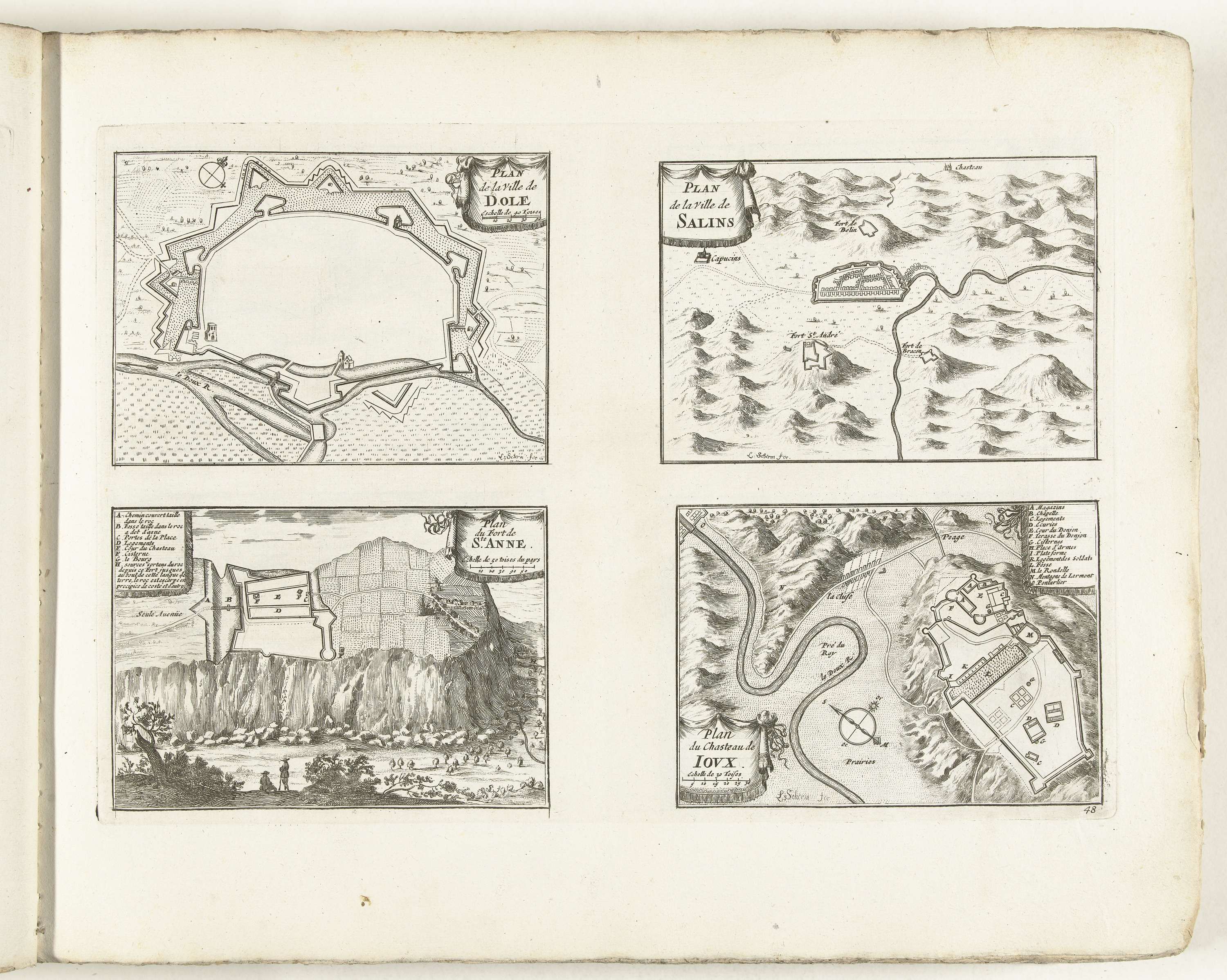 Plattegronden van Dôle, Salins, St. Anne en Joux, ca...