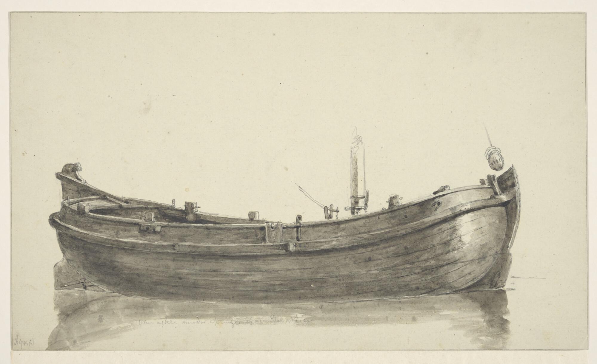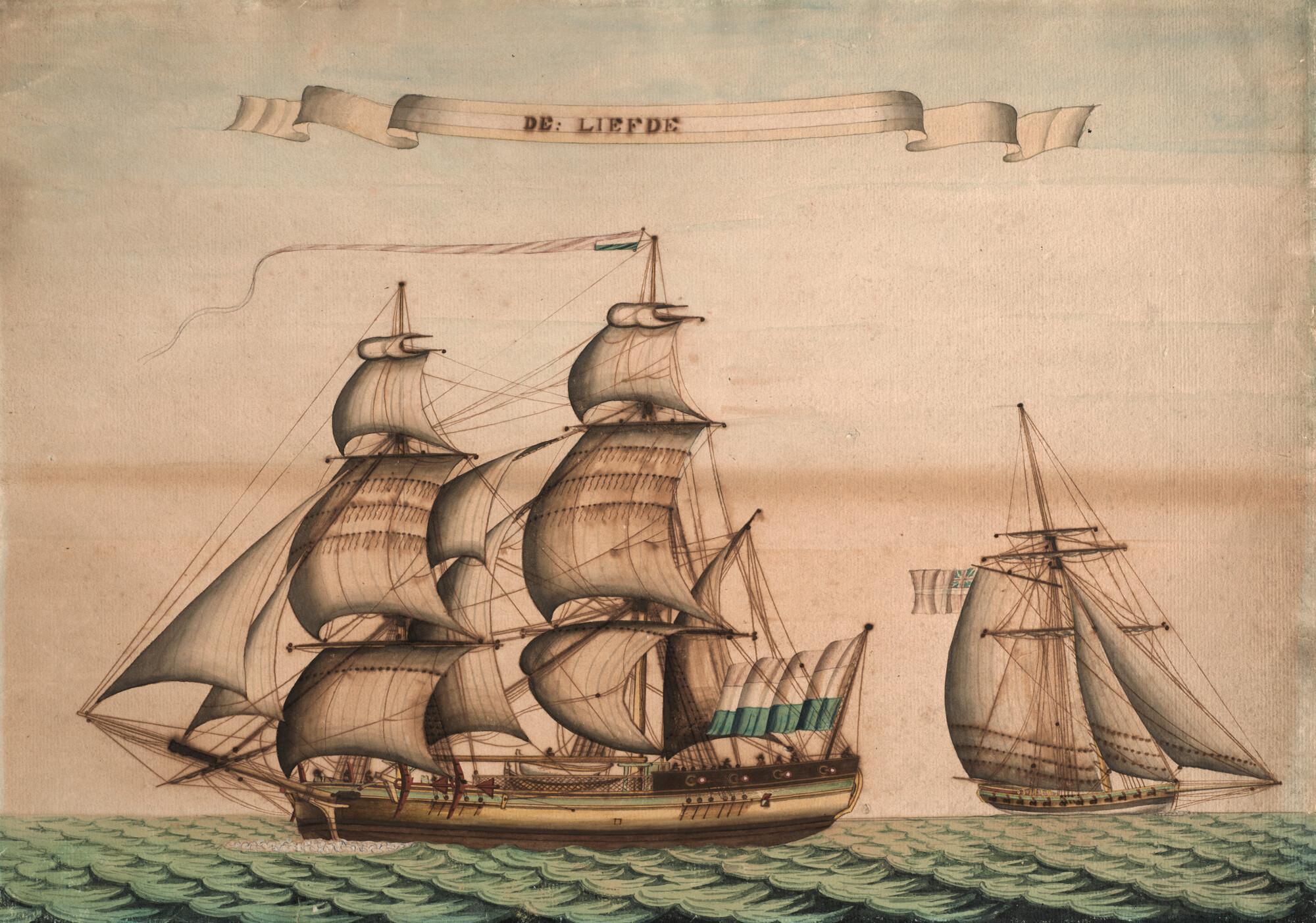 Een fregatschip, een sloep en twee tegen de kade afg...