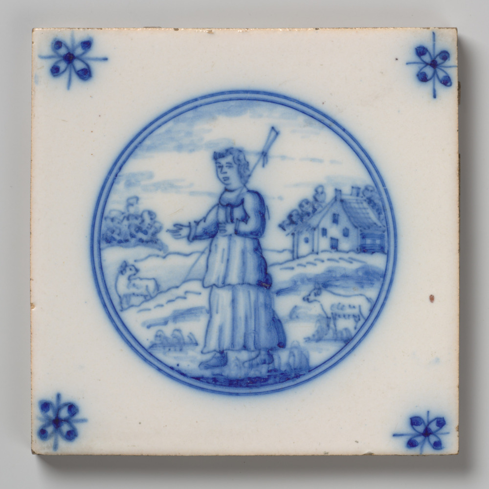 tegel van aardewerk met tinglazuur, voorstellende: P...