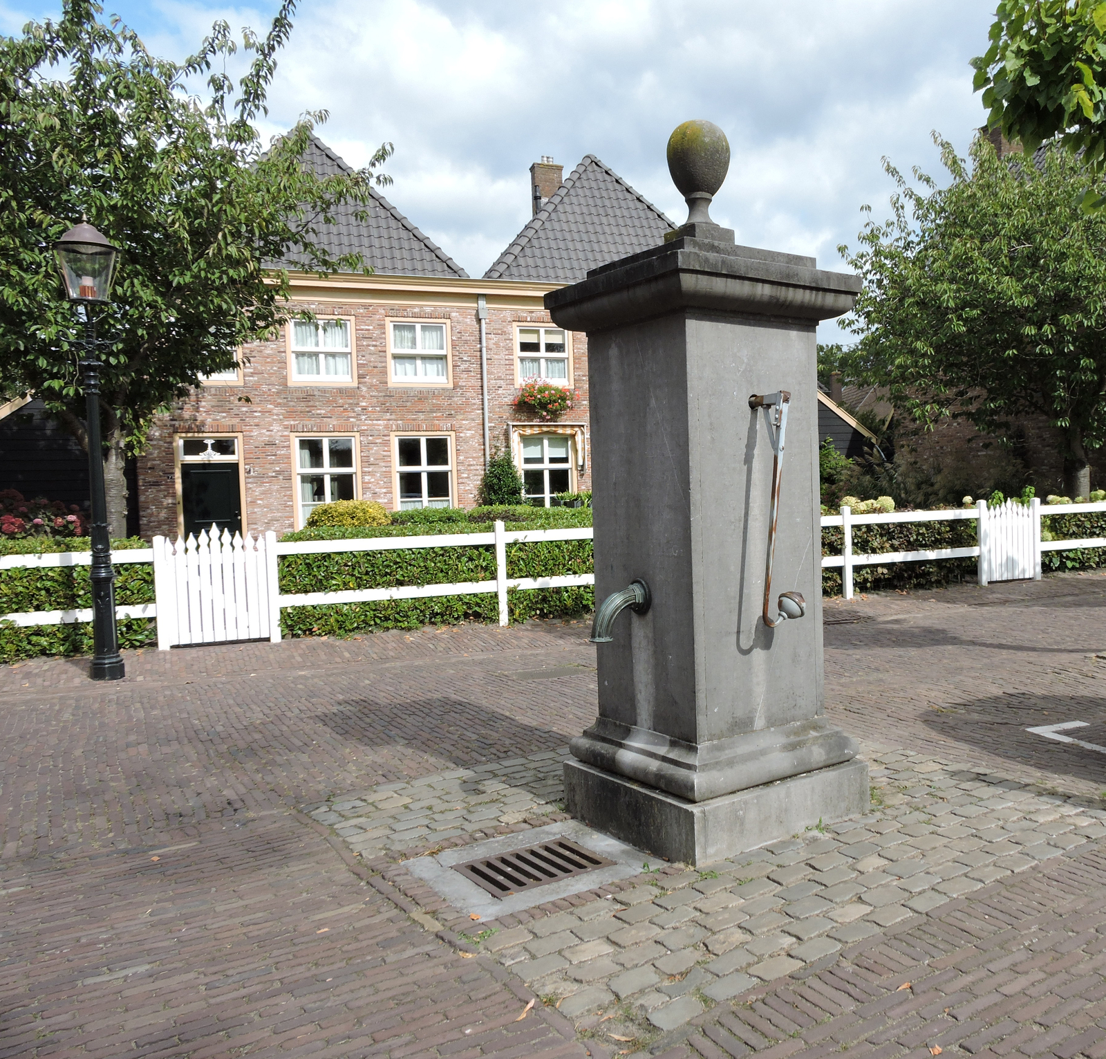 Natuurstenen waterpomp met bekroning, op de parkeerp...