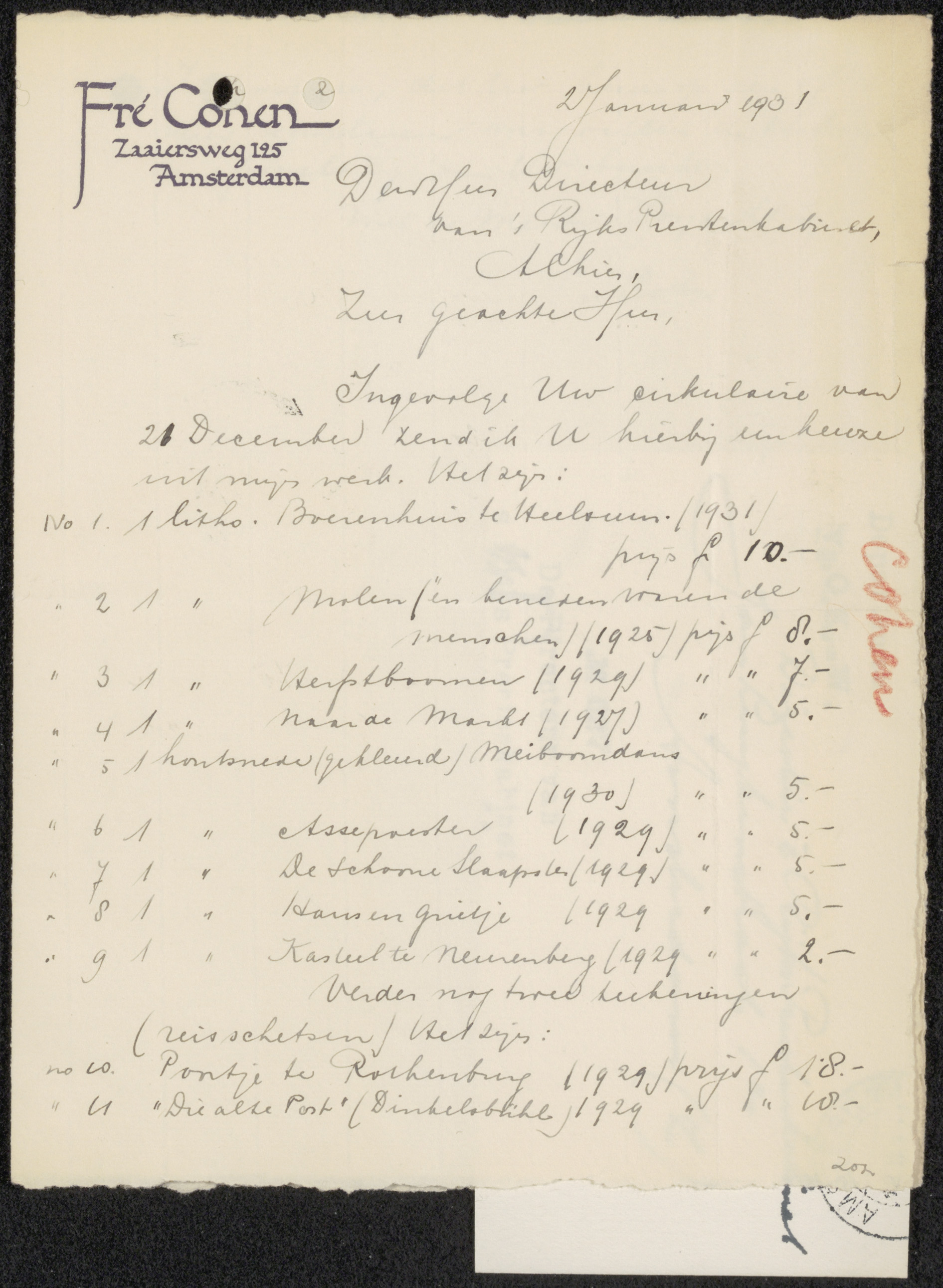 Brief aan Frans Buffa en Zonen