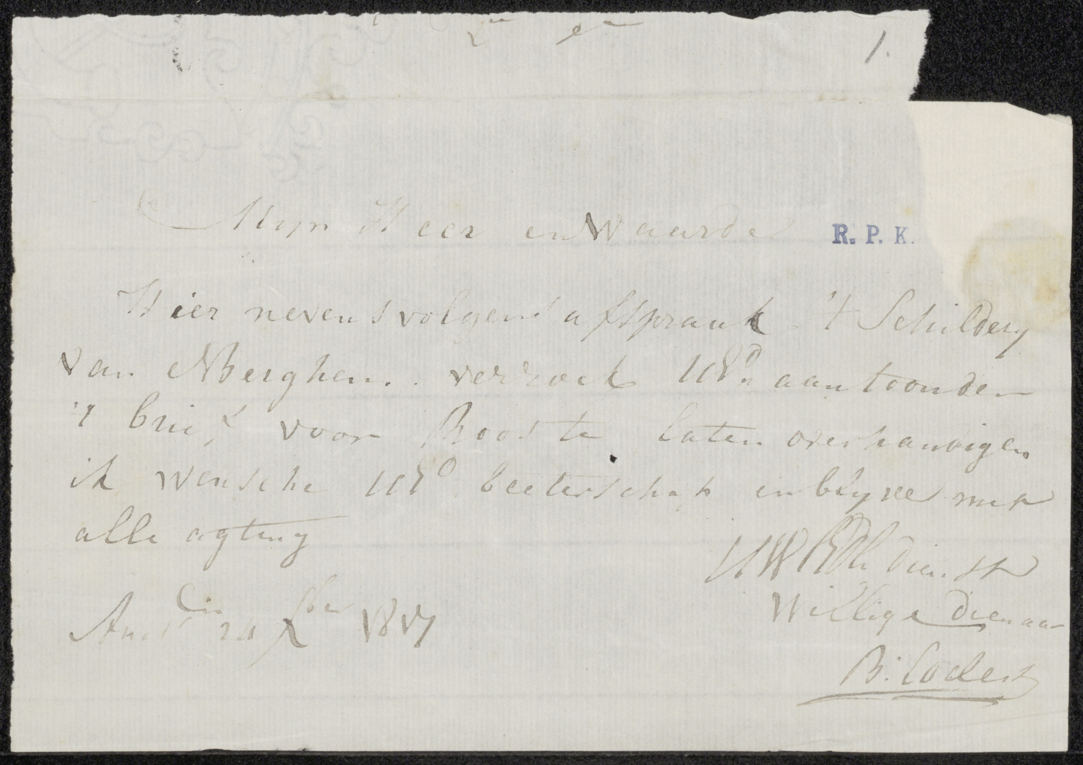 Brief aan anoniem, mogelijk aan C.J. de Lang