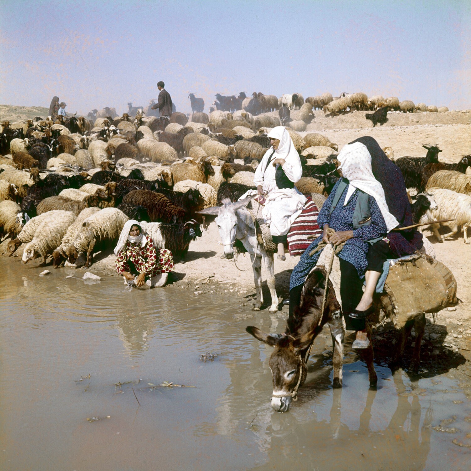 Nomaden met hun schapenkudde met o.a. ezeltjes als l...