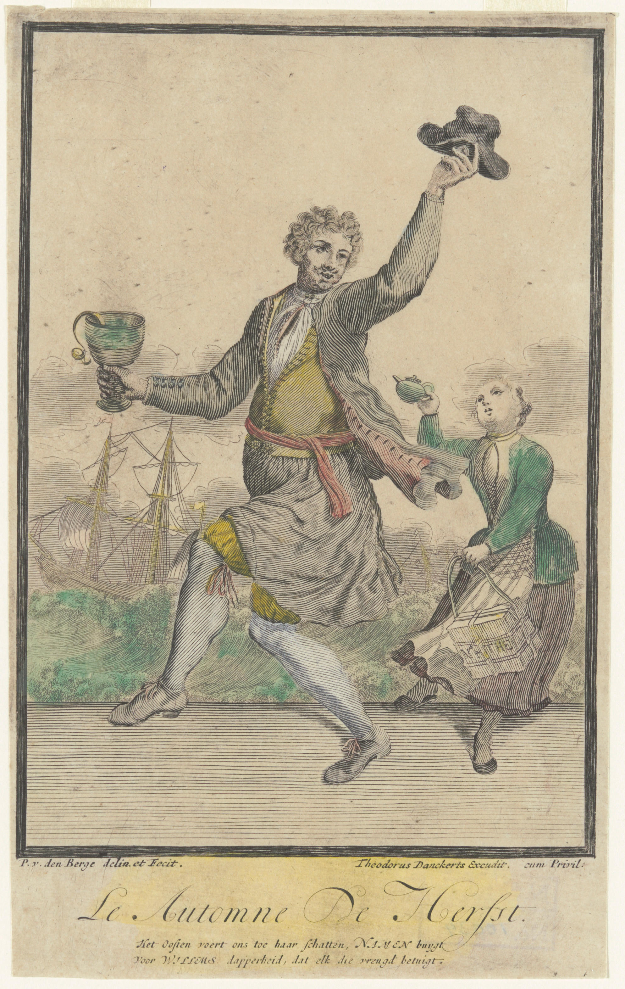 Prent van man met roemer en meisje met theepot, circ...