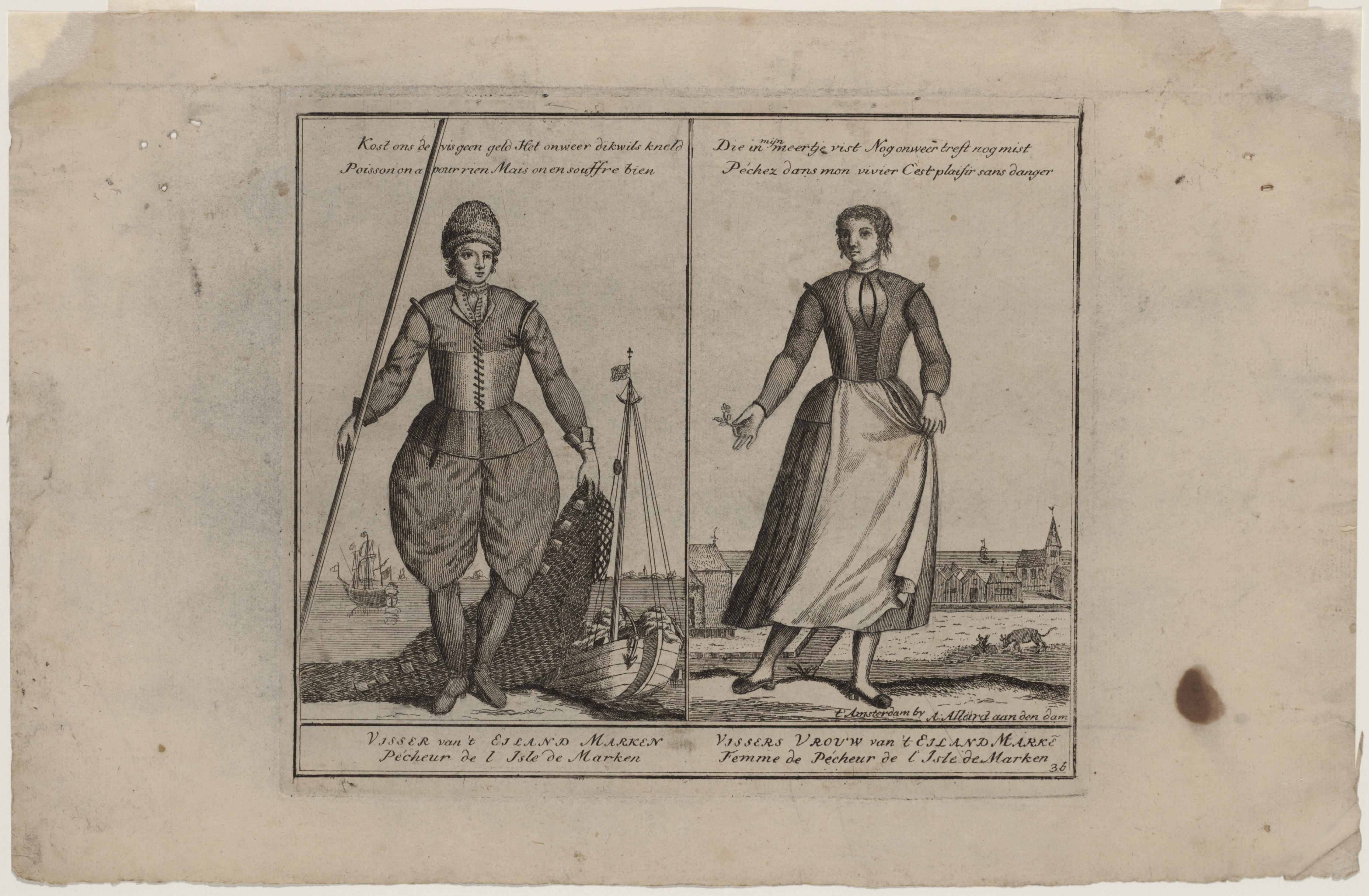 Visser en vissersvrouw van Marken, circa 1700