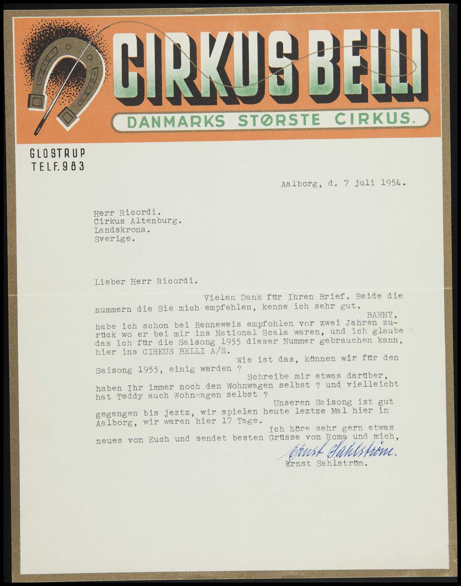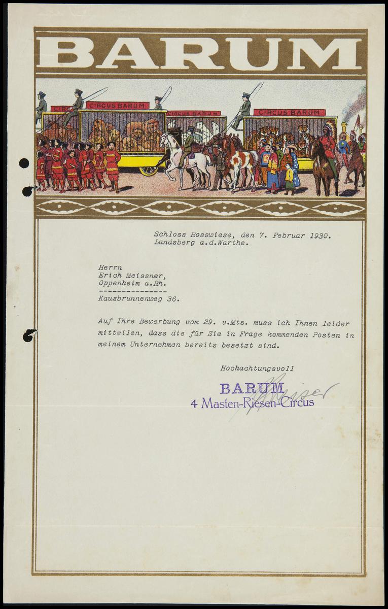 Brief Circus Franz Althoff