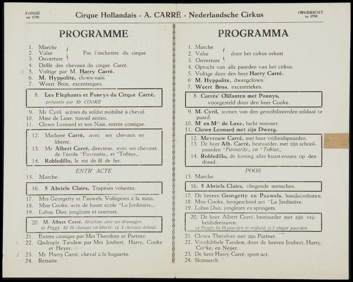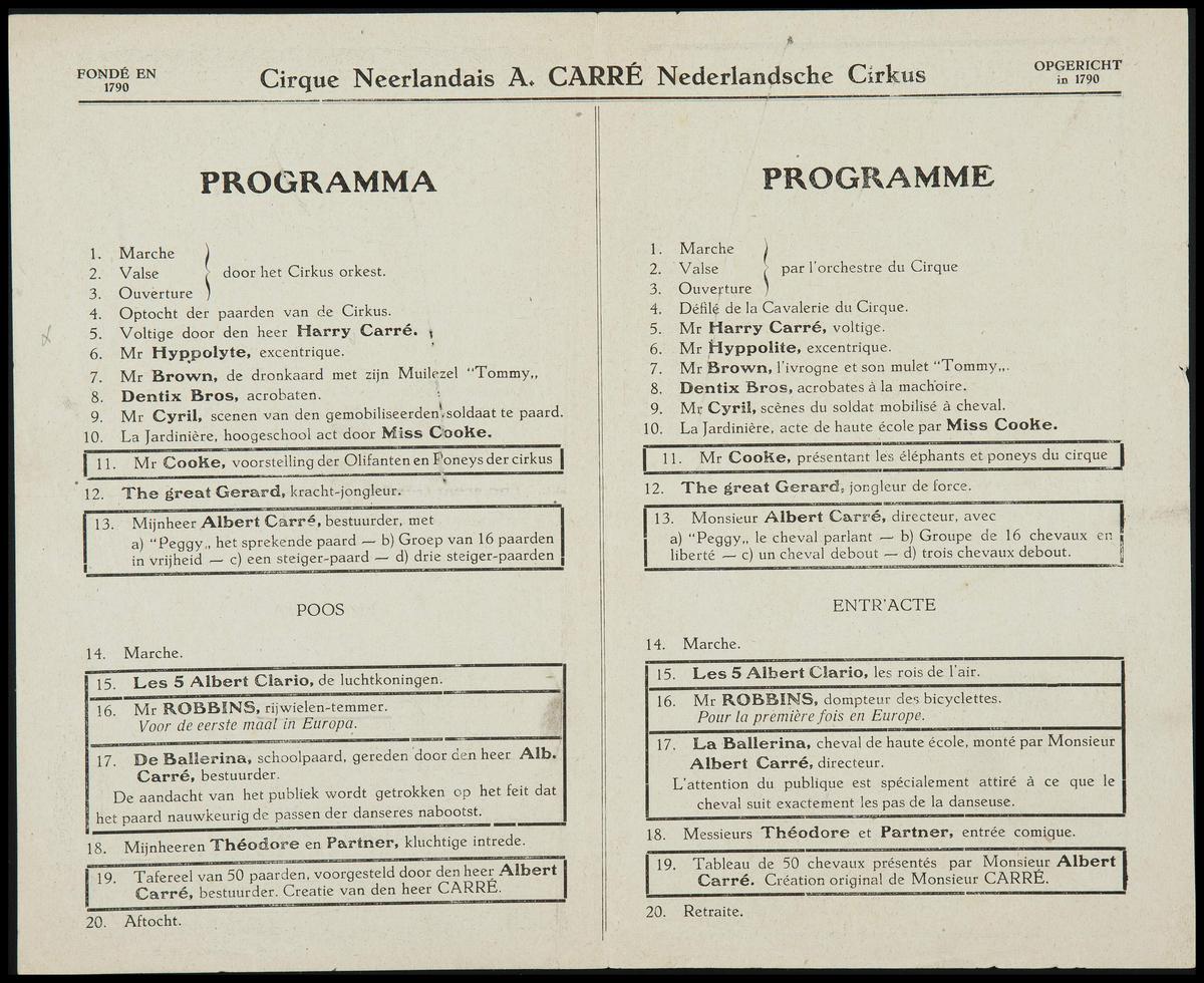 Programma Circus Albert Carré
