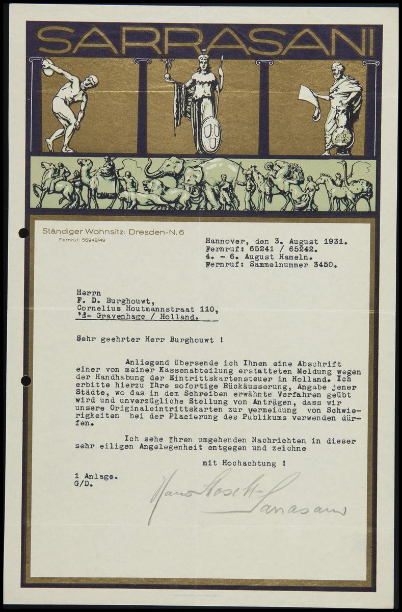 Brief Circus Sarrasani