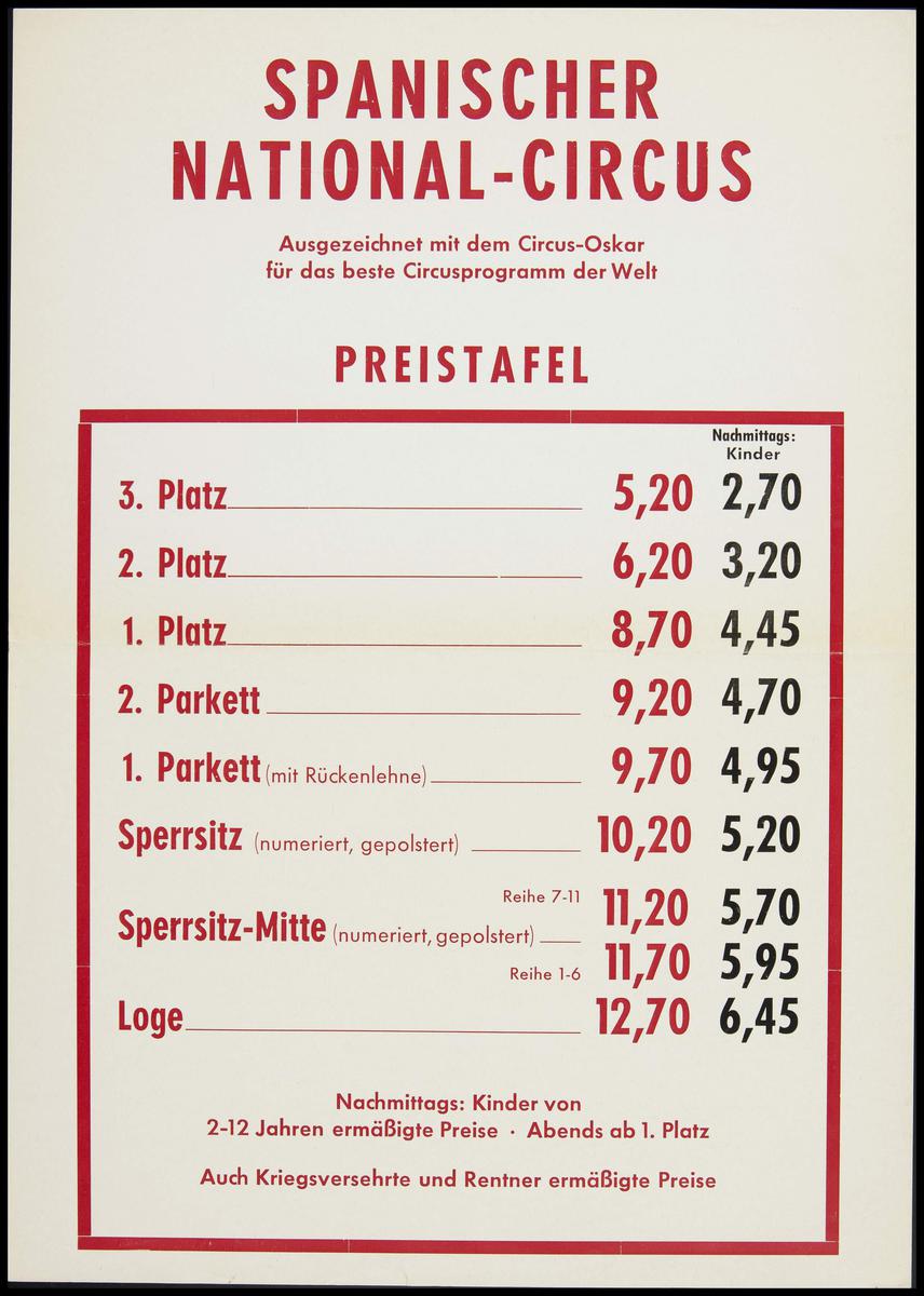 Prijslijst Spanischer National-Circus