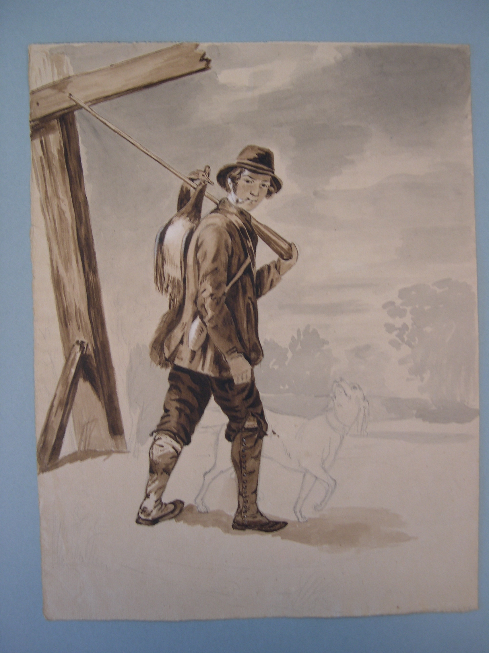 Tekening van jager met hond