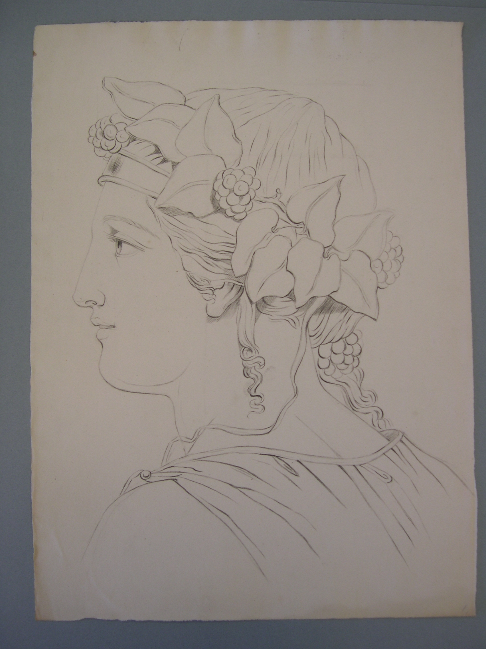 Portret van een vrouw met een krans om haar hoofd