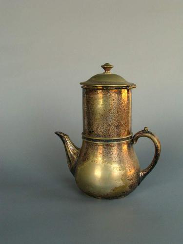 Metalen koffiepot met filter.