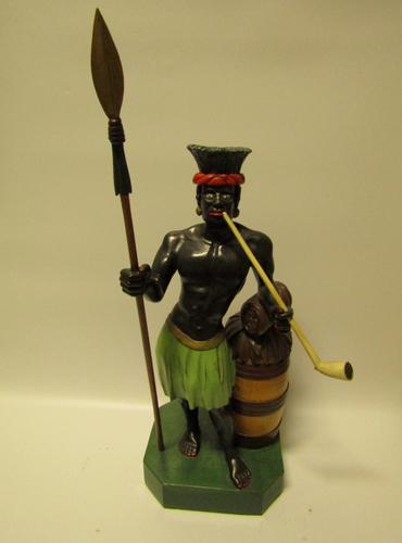 Beeld van donkere man met speer en pijp