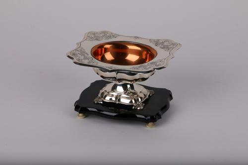 Zilveren pijpkomfoor met koperen binnenbak op houten...