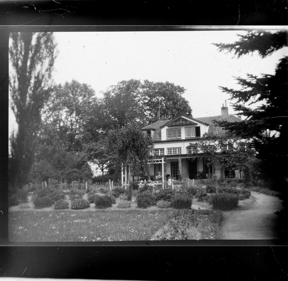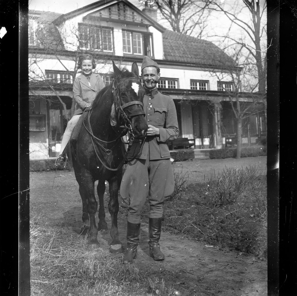 Meisje op een paard in de tuin van Huize 'Den Hoek' ...