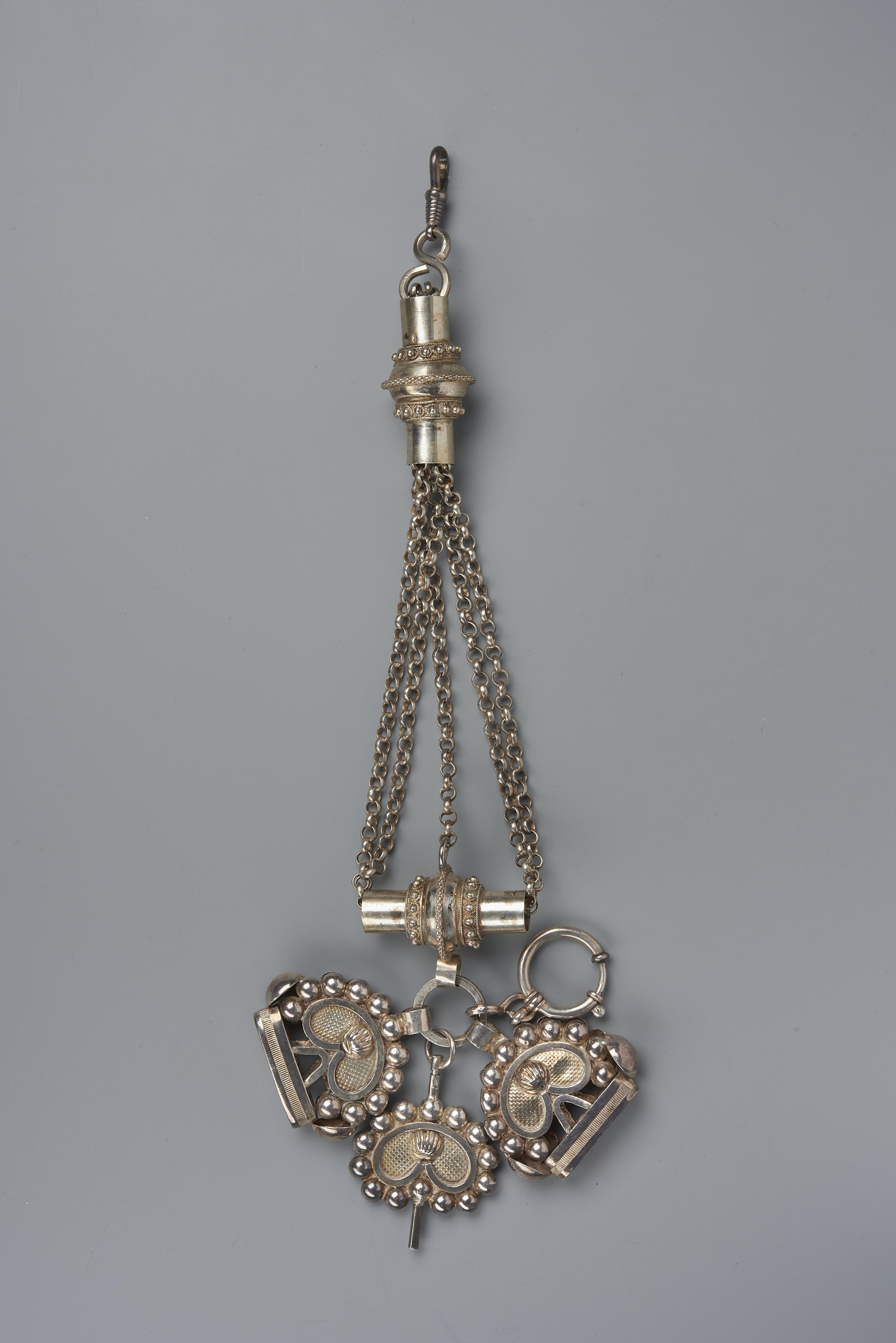 Zilveren horlogeketting met signetten, Staphorst, 19...