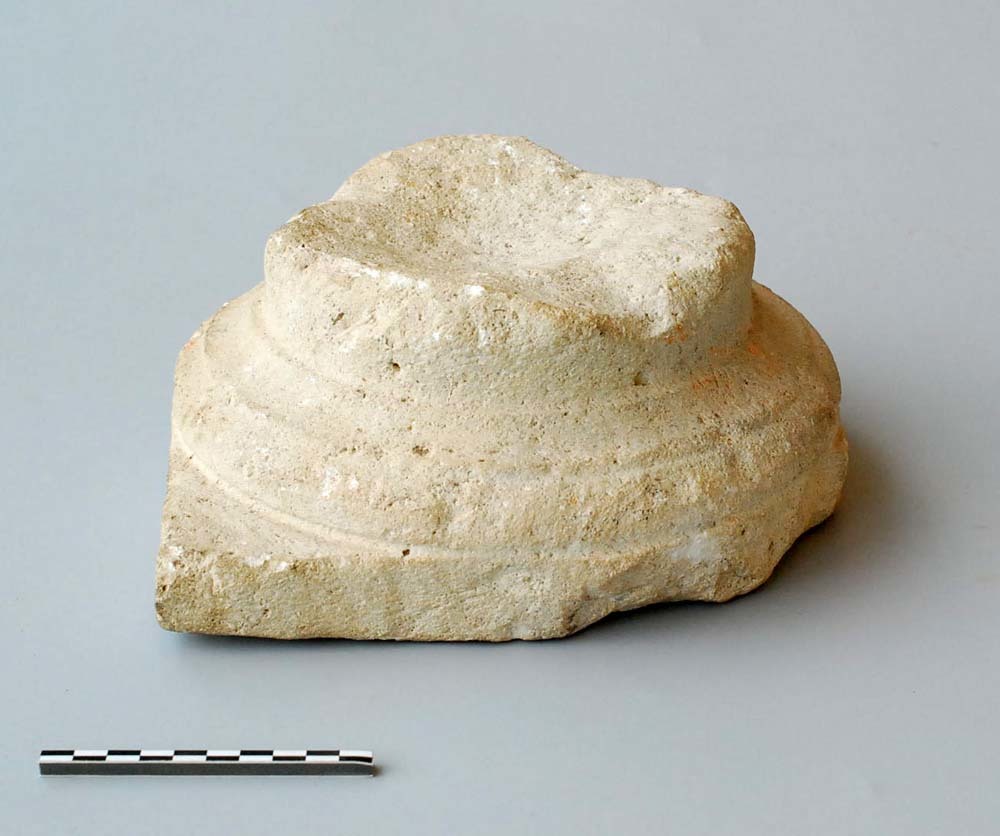 Kapiteel van een zuil, van natuursteen uit de Romein...