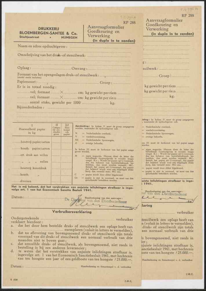 Aanvraagformulier Drukkerij Bloembergen, Santee & Co