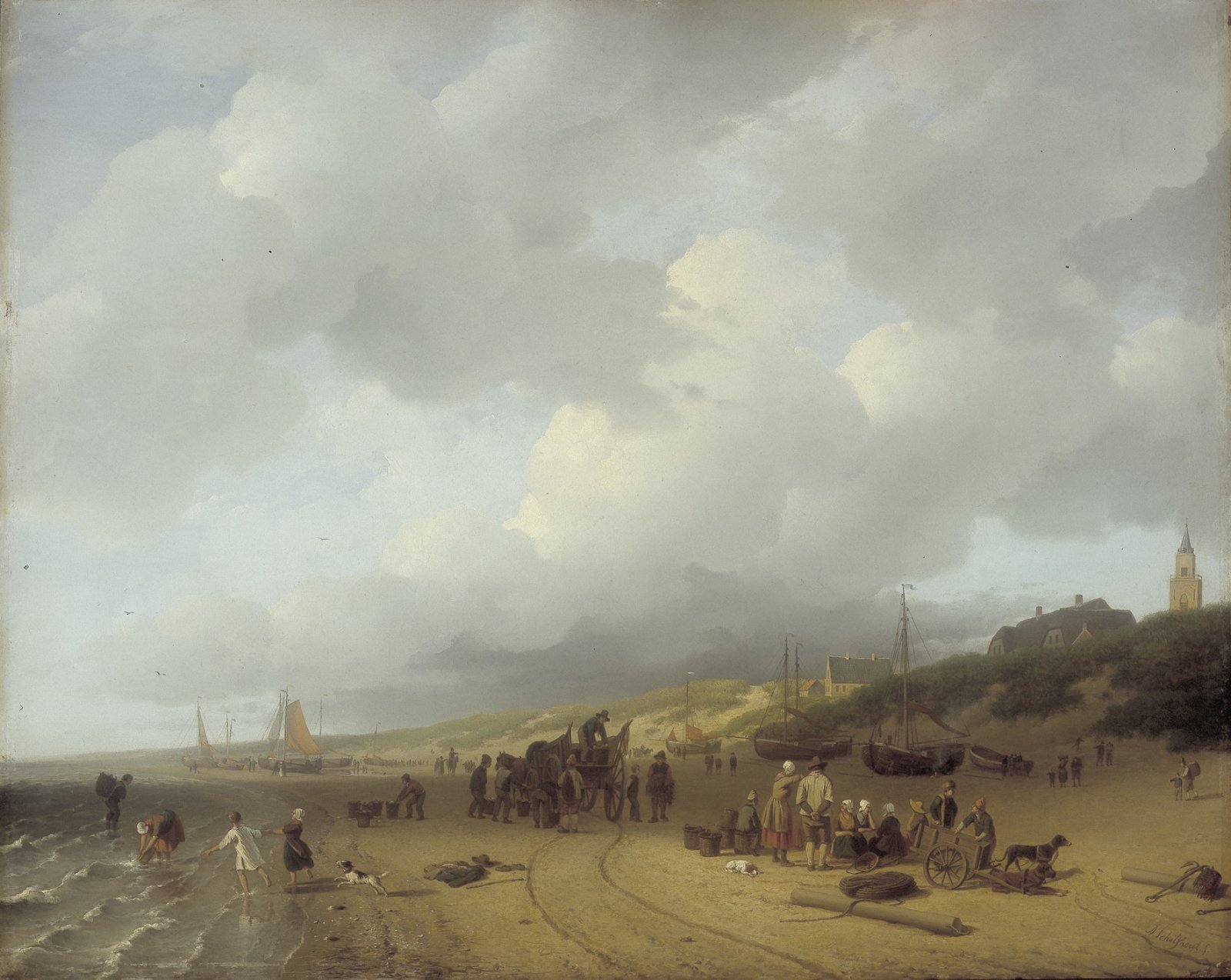 Boten met vissers op het strand bij Scheveningen