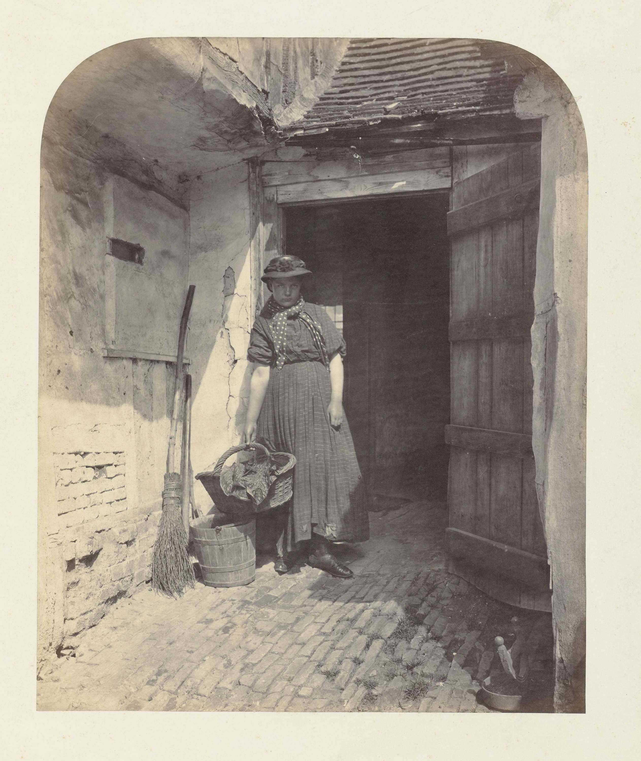 Portret van een onbekende jonge vrouw in een deurope...