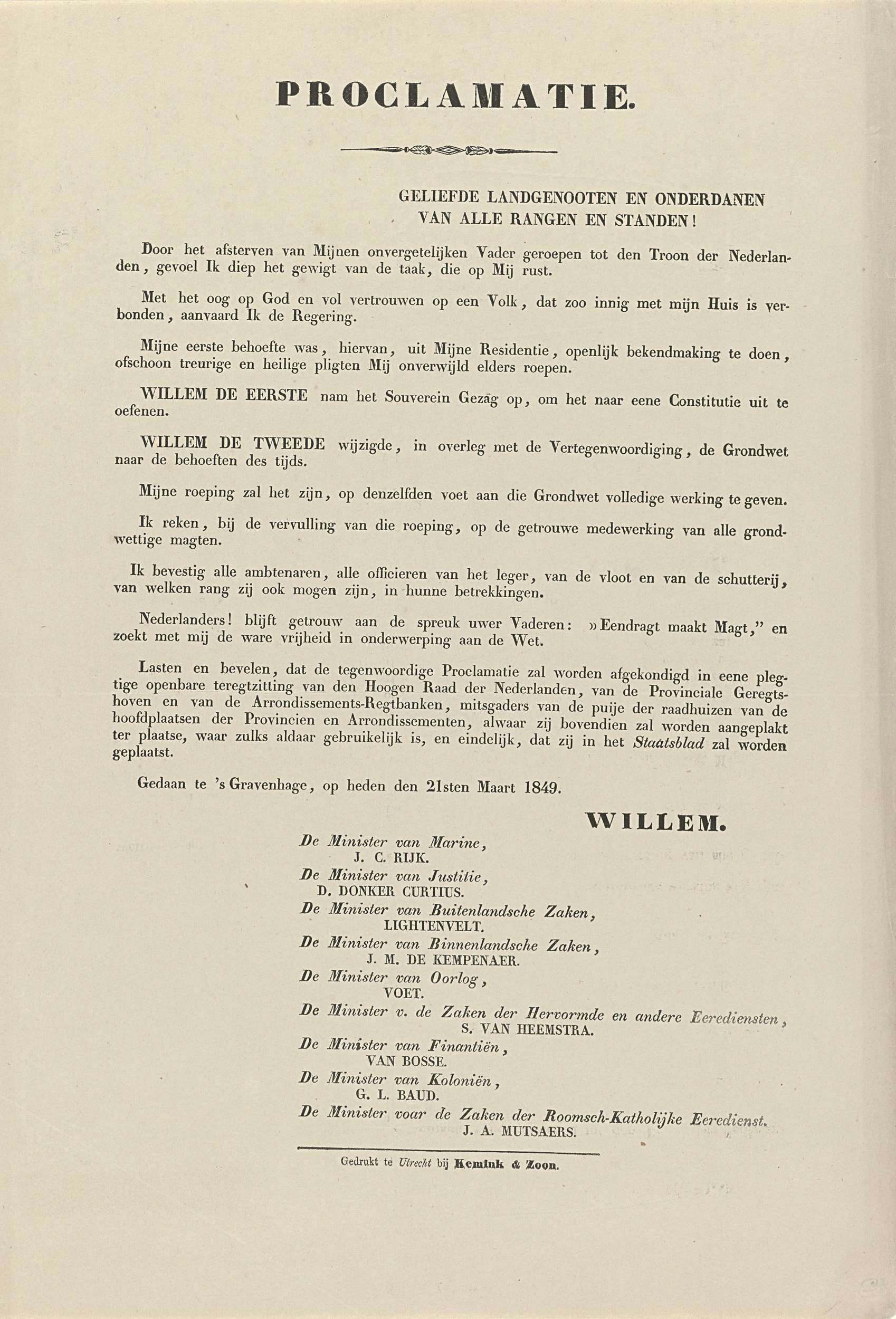 Eerste proclamatie uitgevaardigd door koning Willem ...