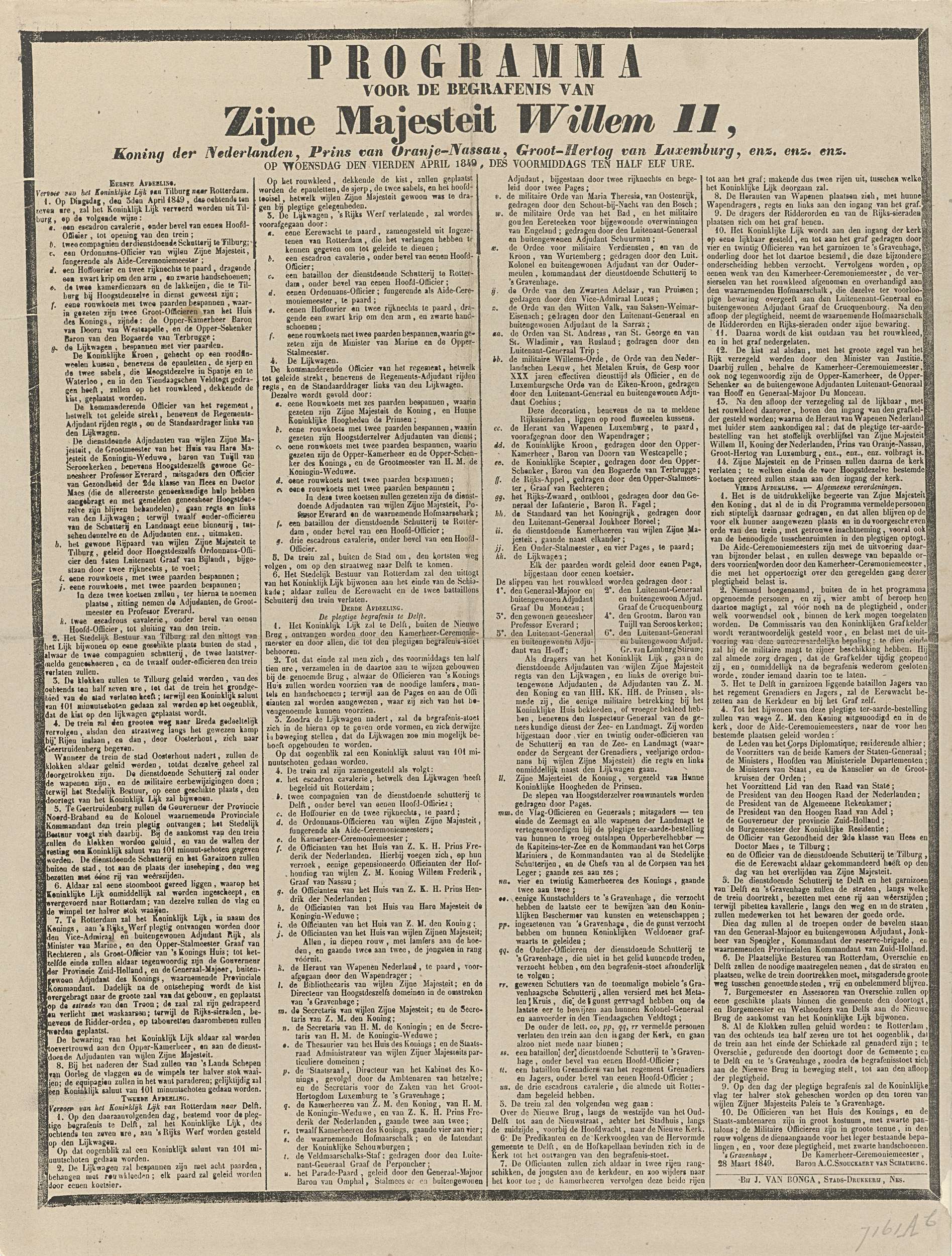 Programma voor de begrafenis van Zijne Majesteit Wil...