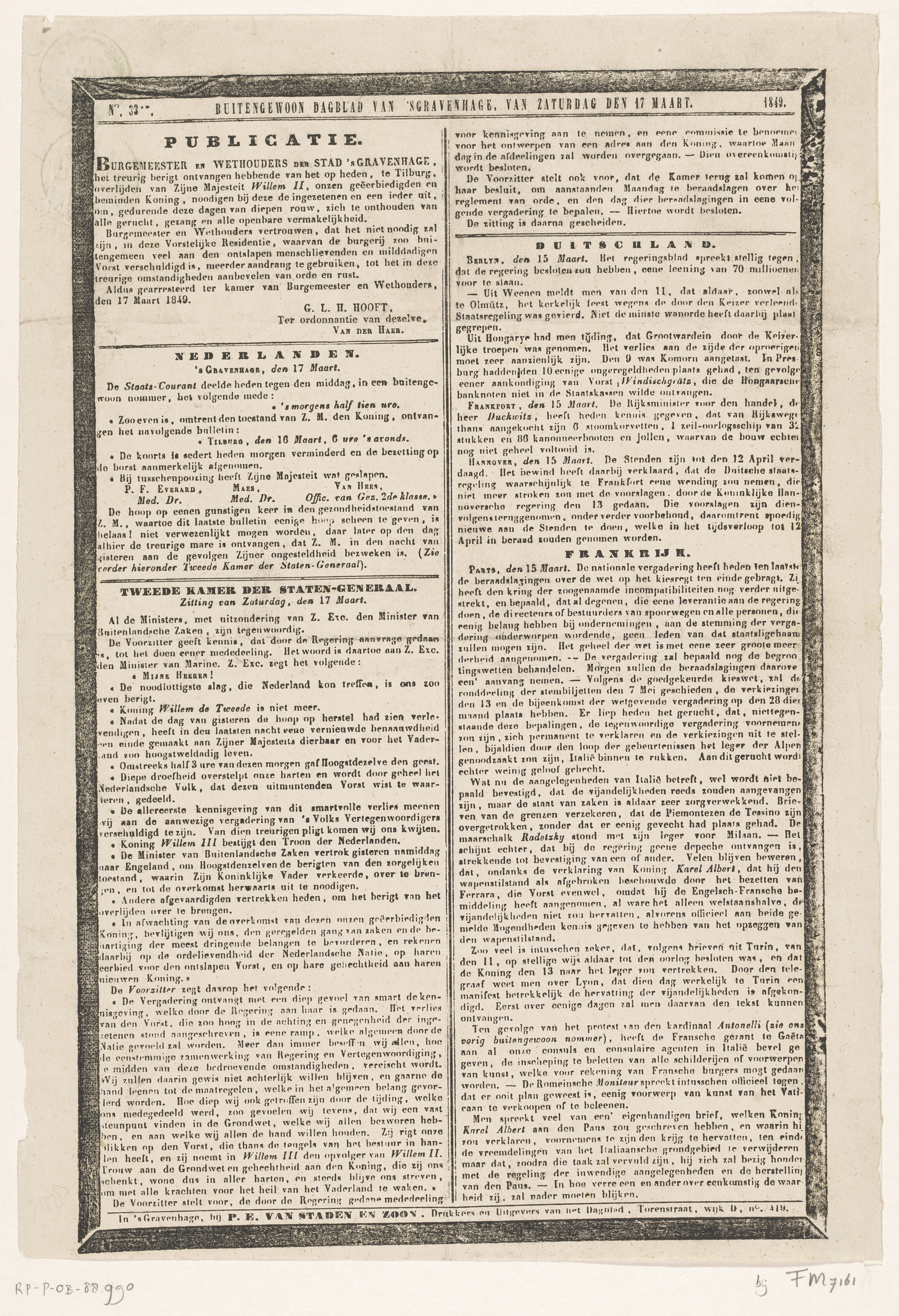 Buitengewoon Dagblad van 'sGravenhage, van Zaturdag ...