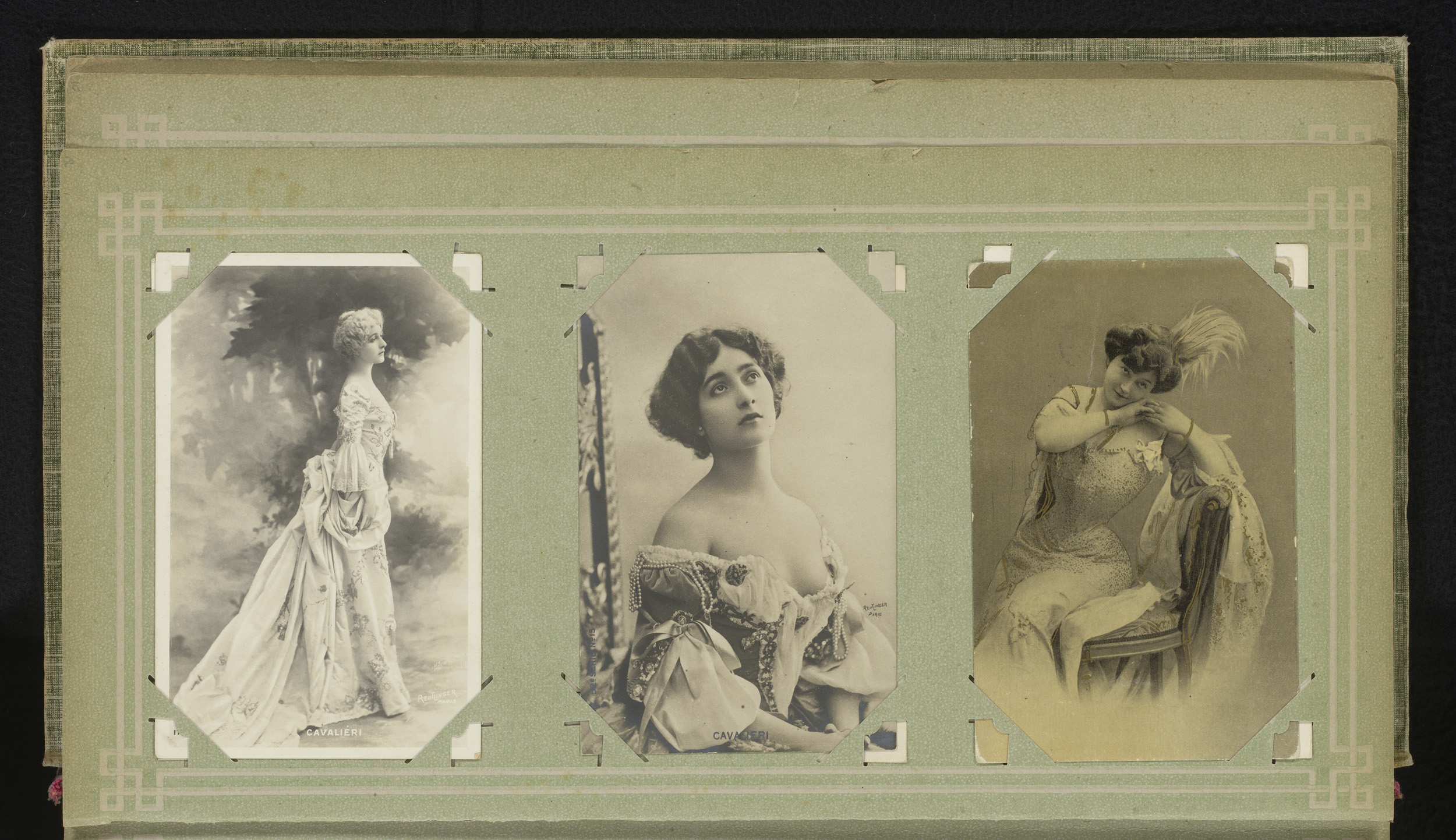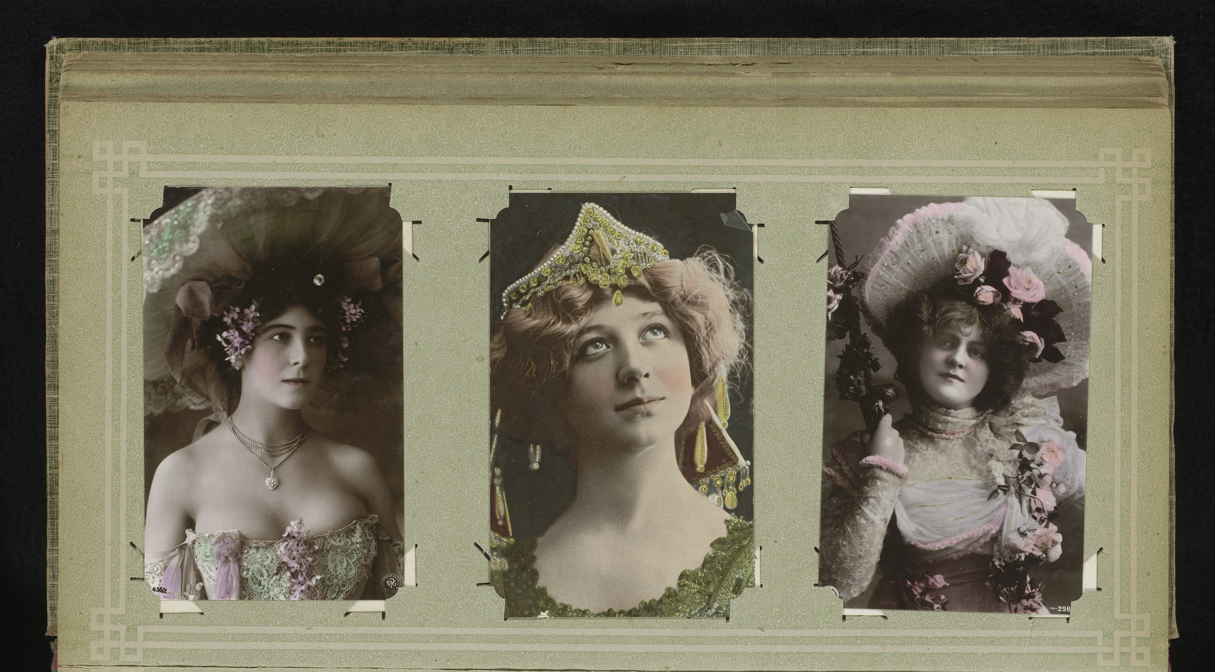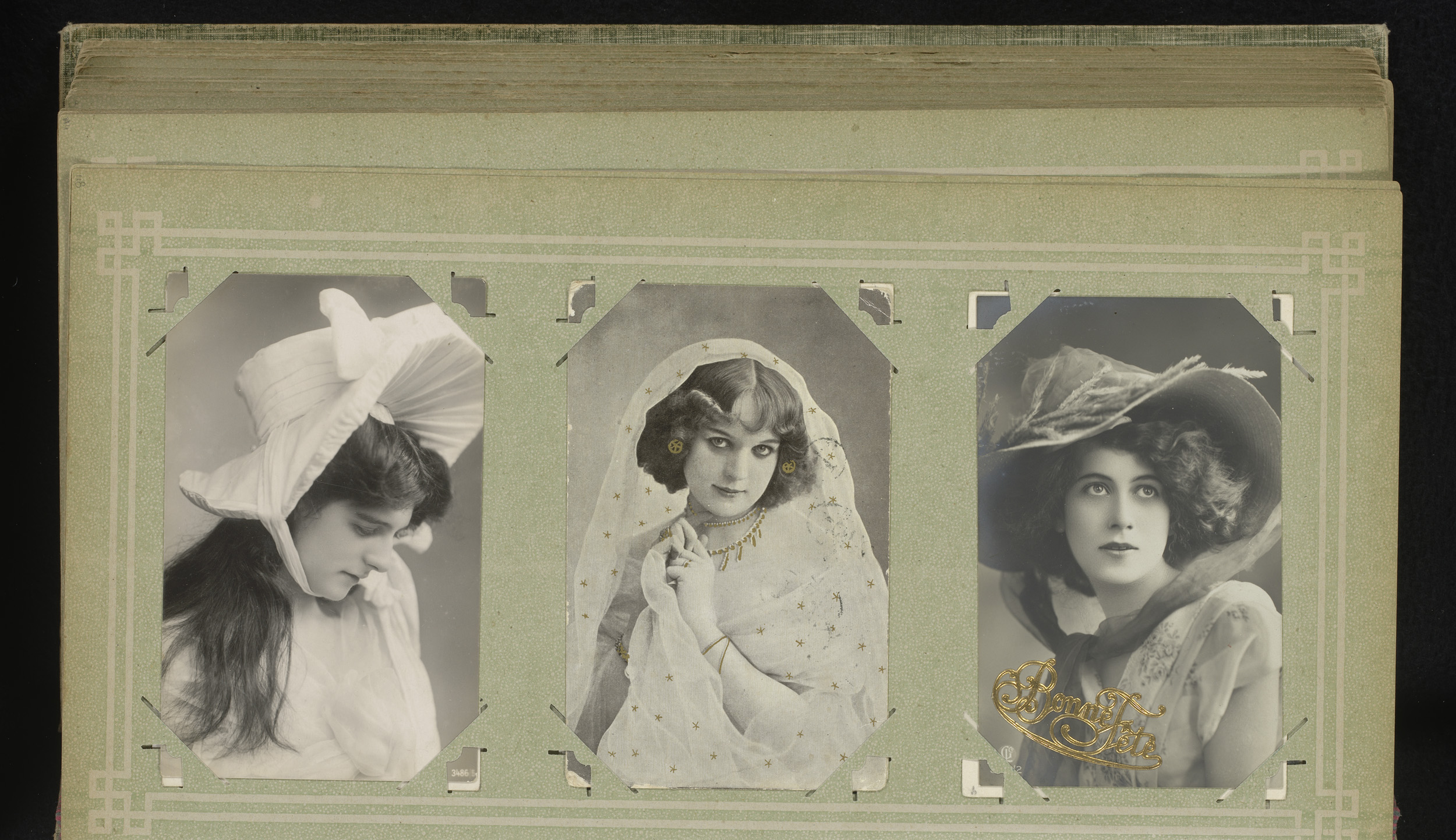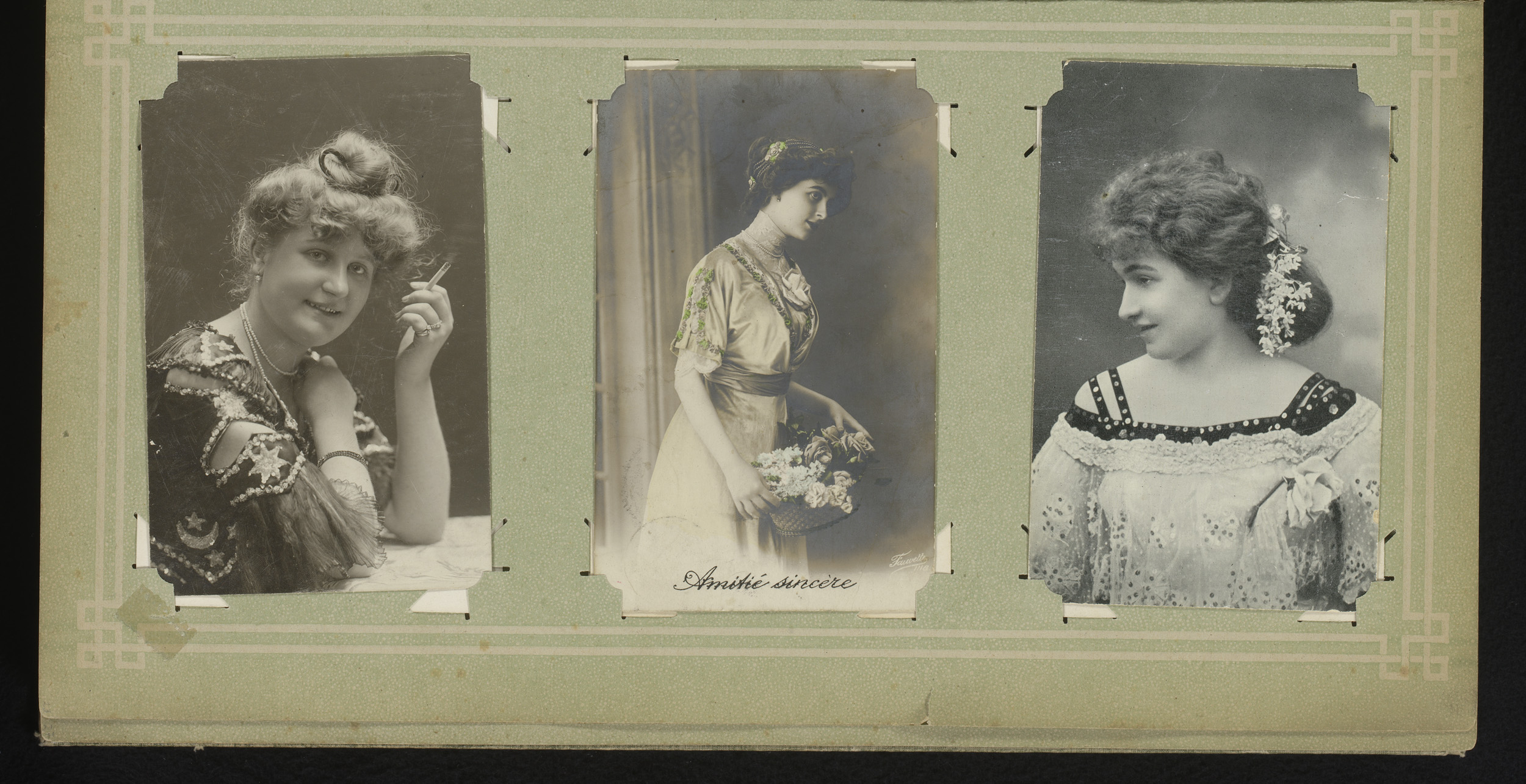 Drie portretten van jonge vrouwen, onder wie de actr...
