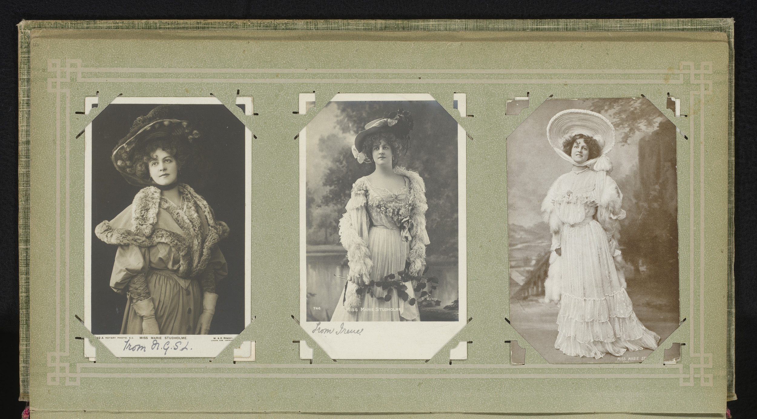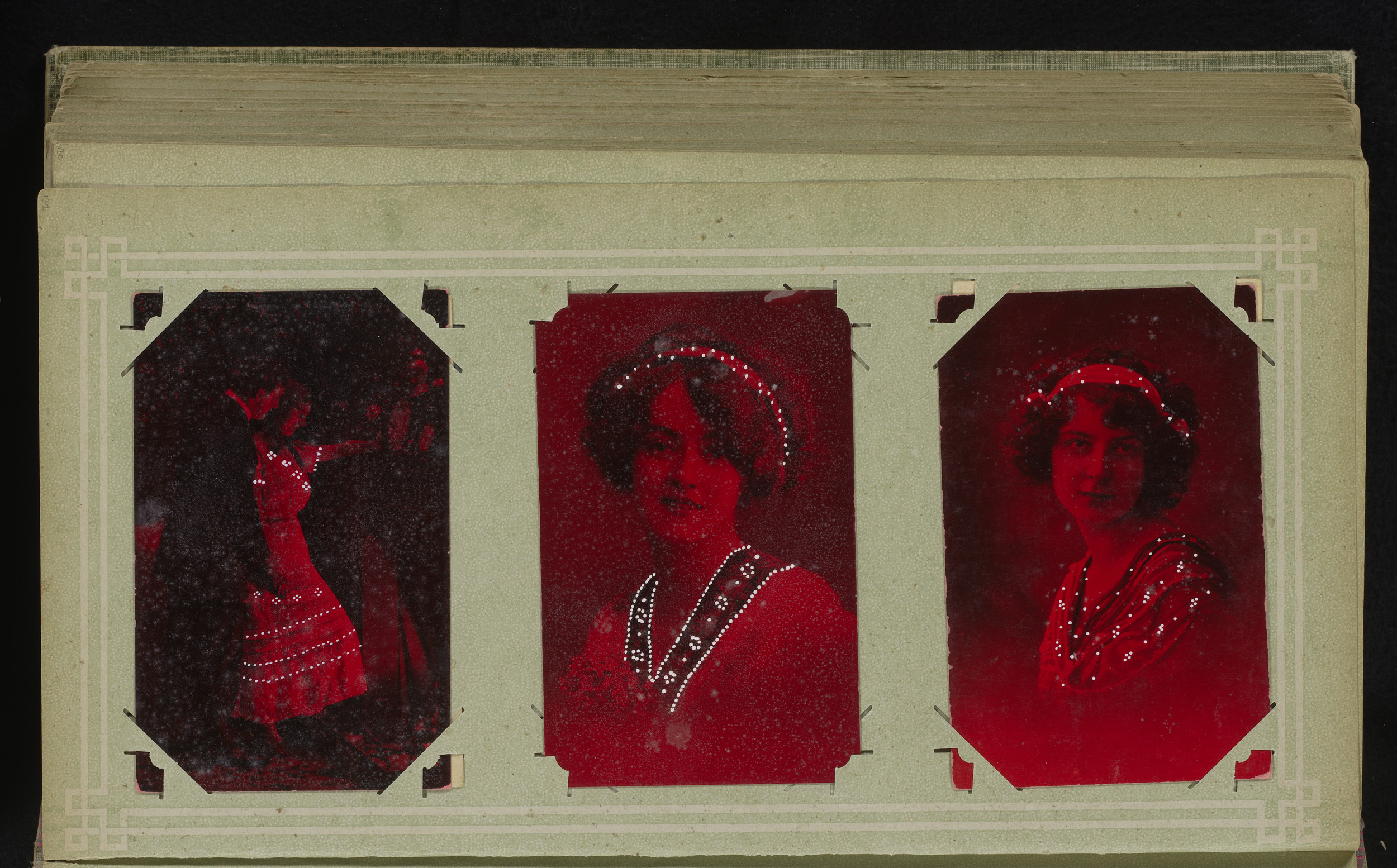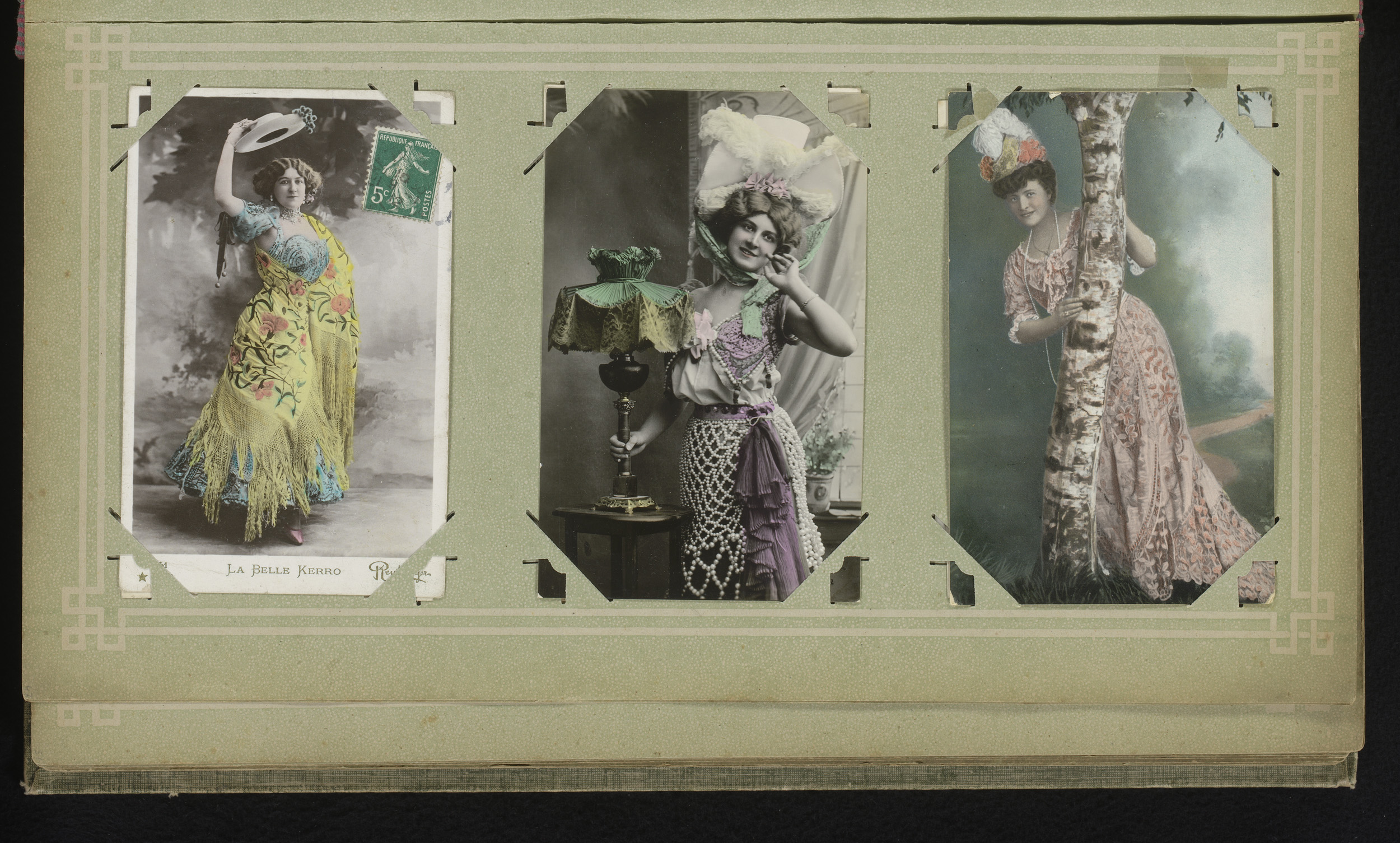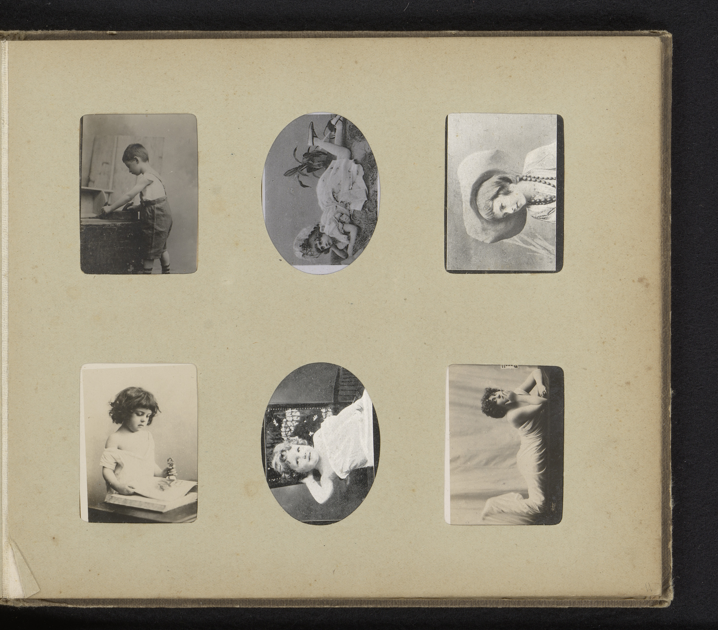 Drie portretten van jonge vrouwen, onder wie de actr...
