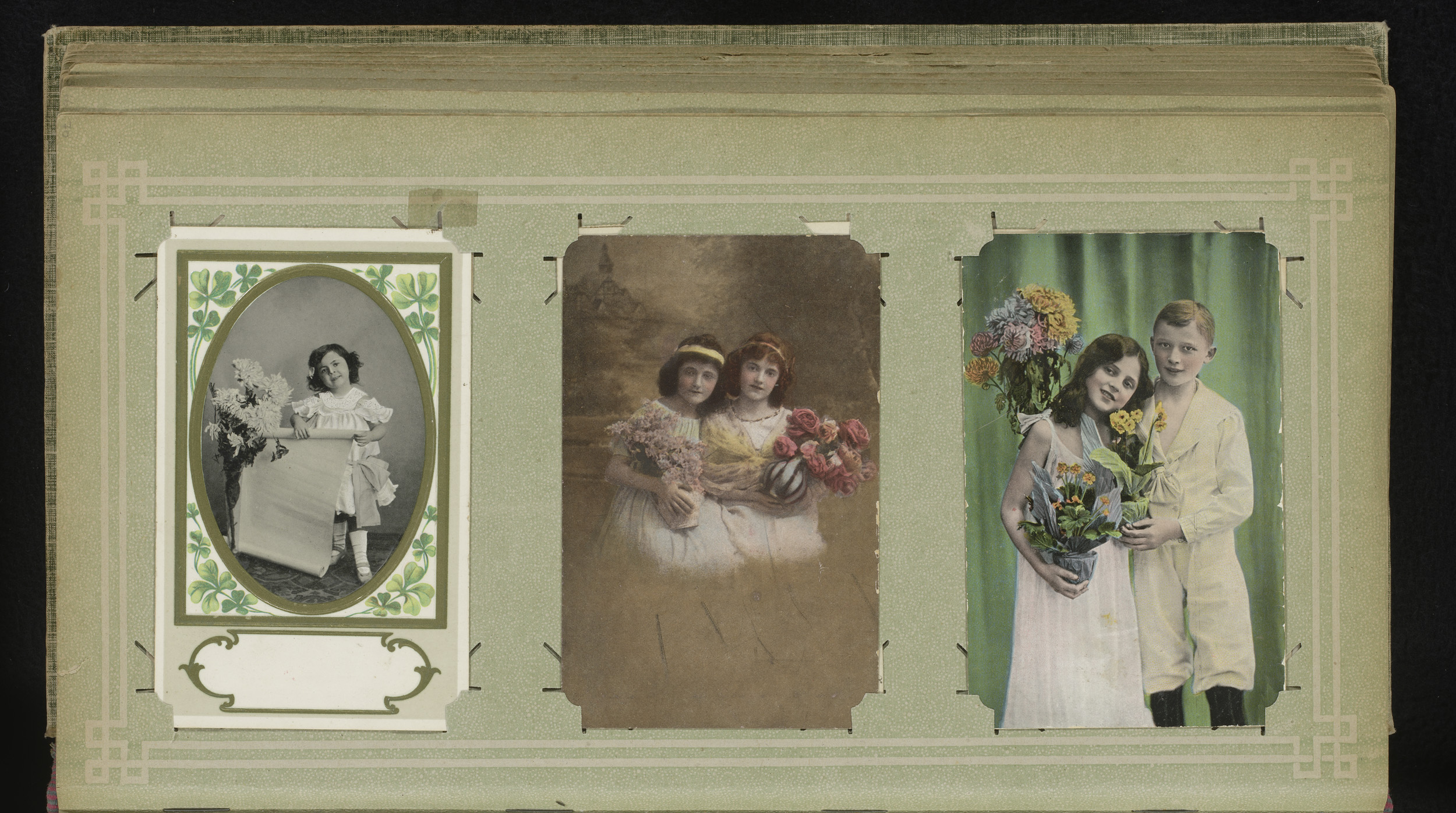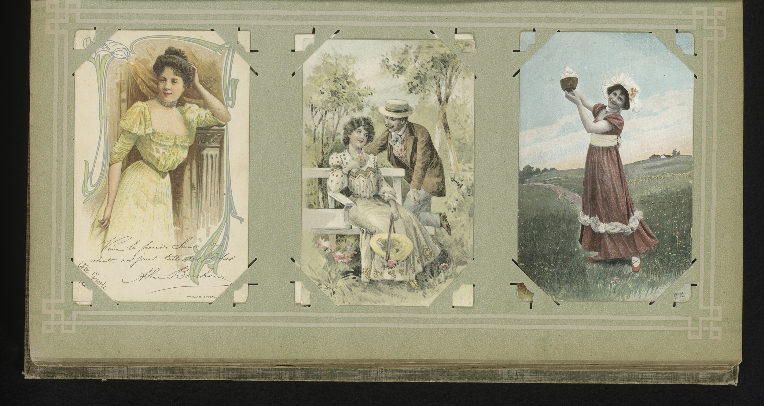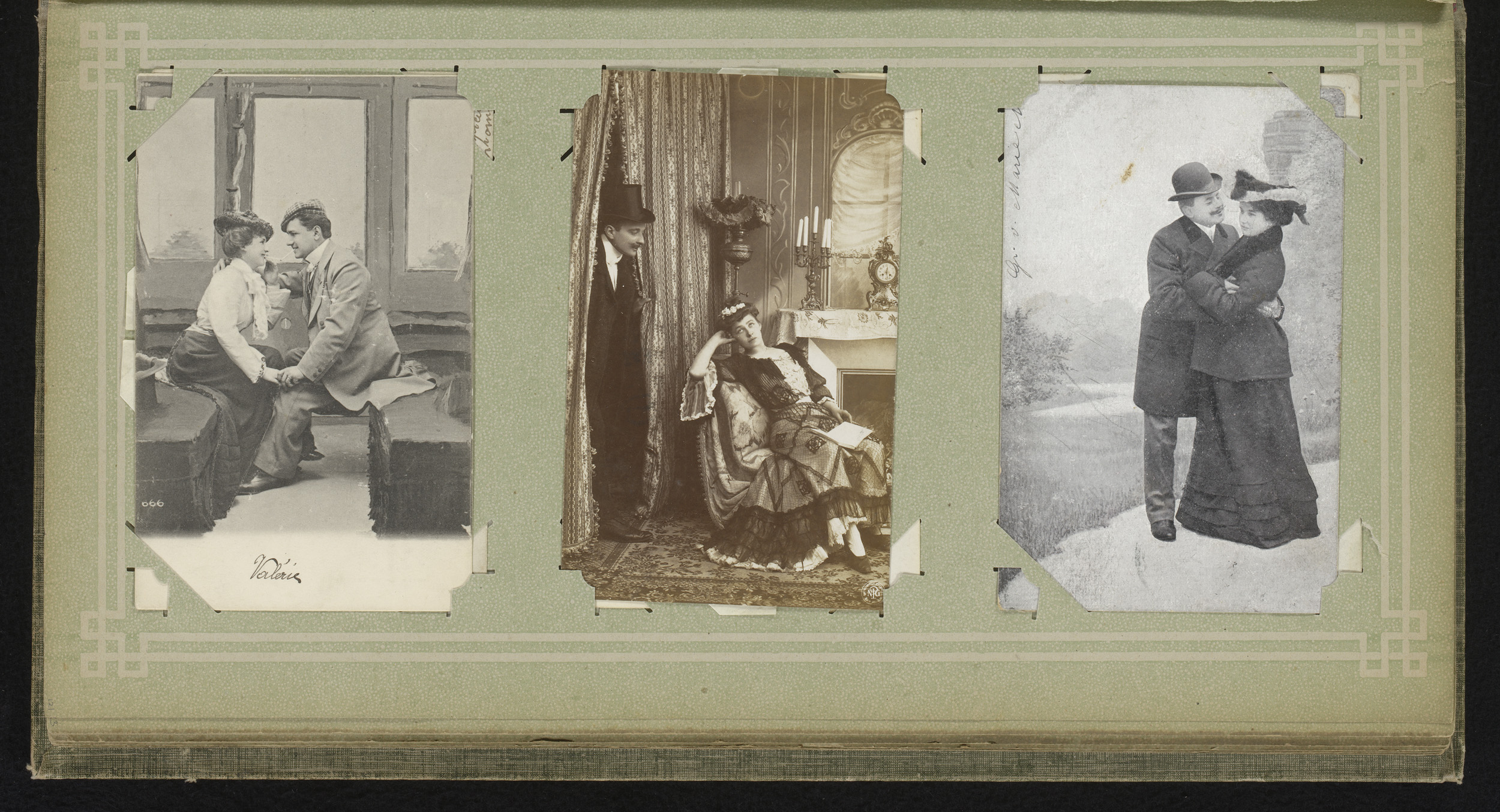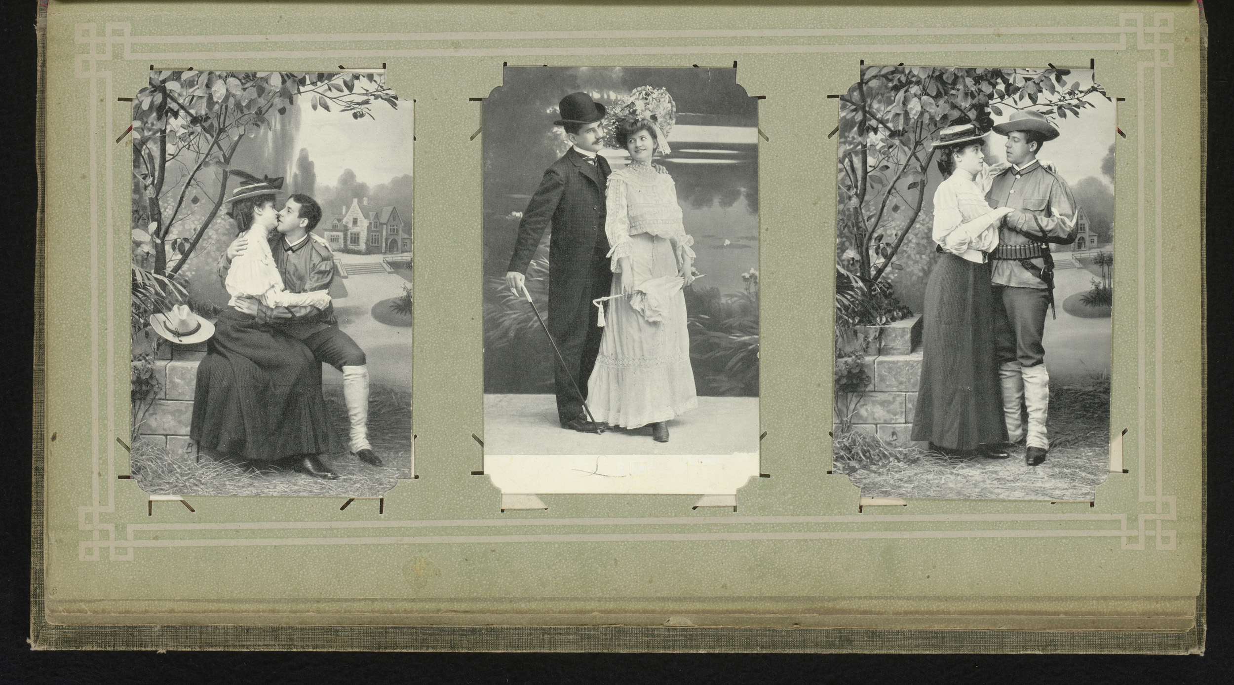 Drie portretten van jonge vrouwen, onder wie de actr...