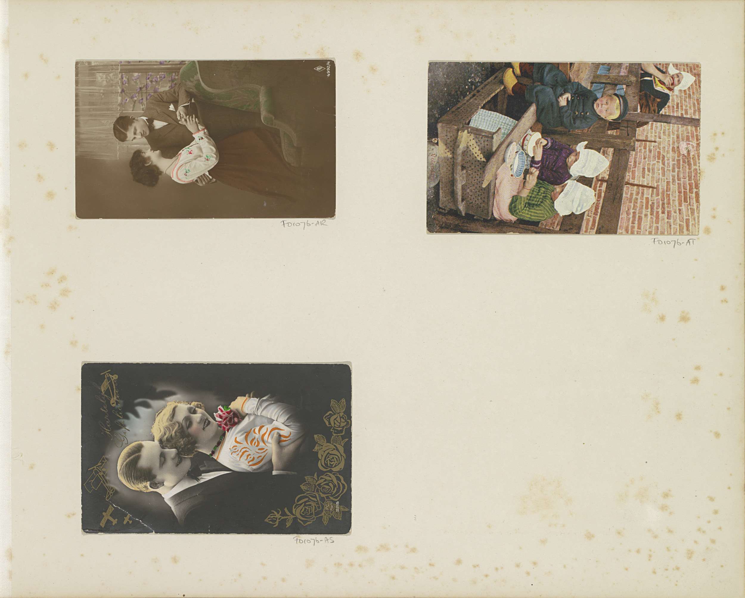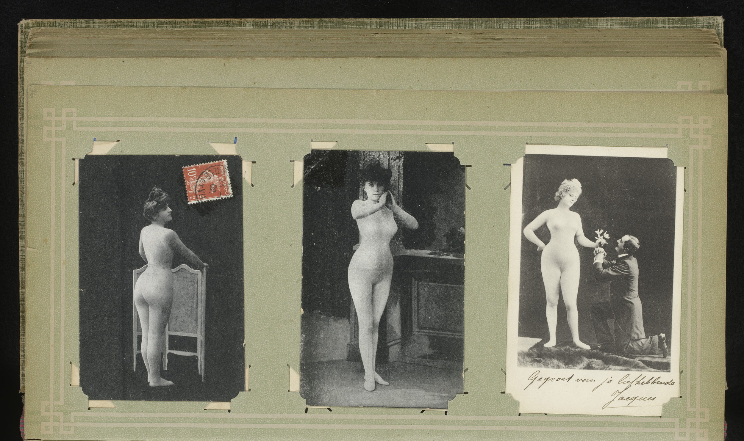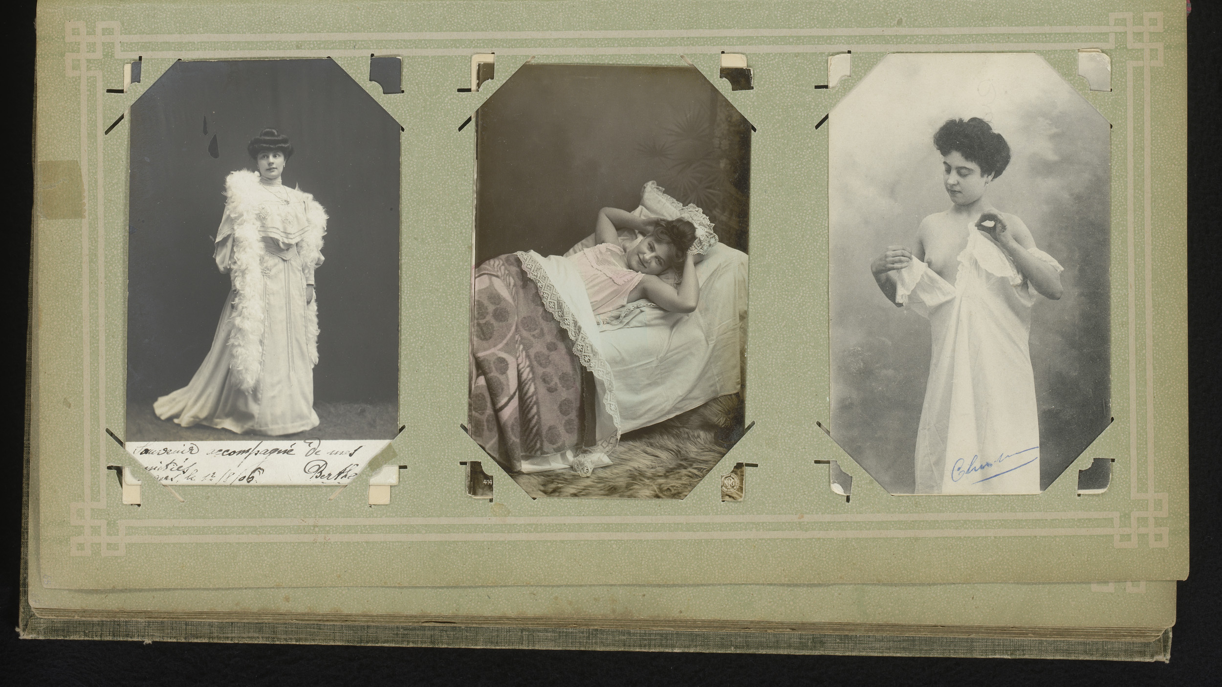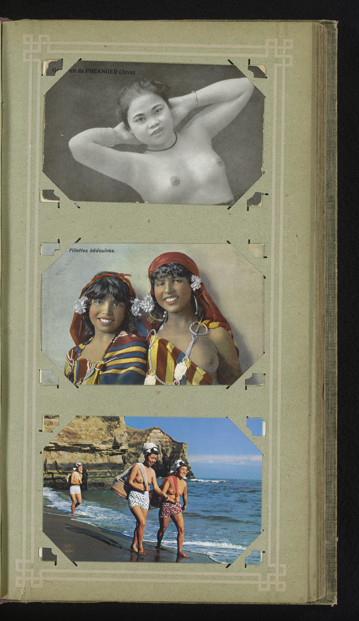 Drie portretten van vrouwen met ontbloot bovenlichaam
