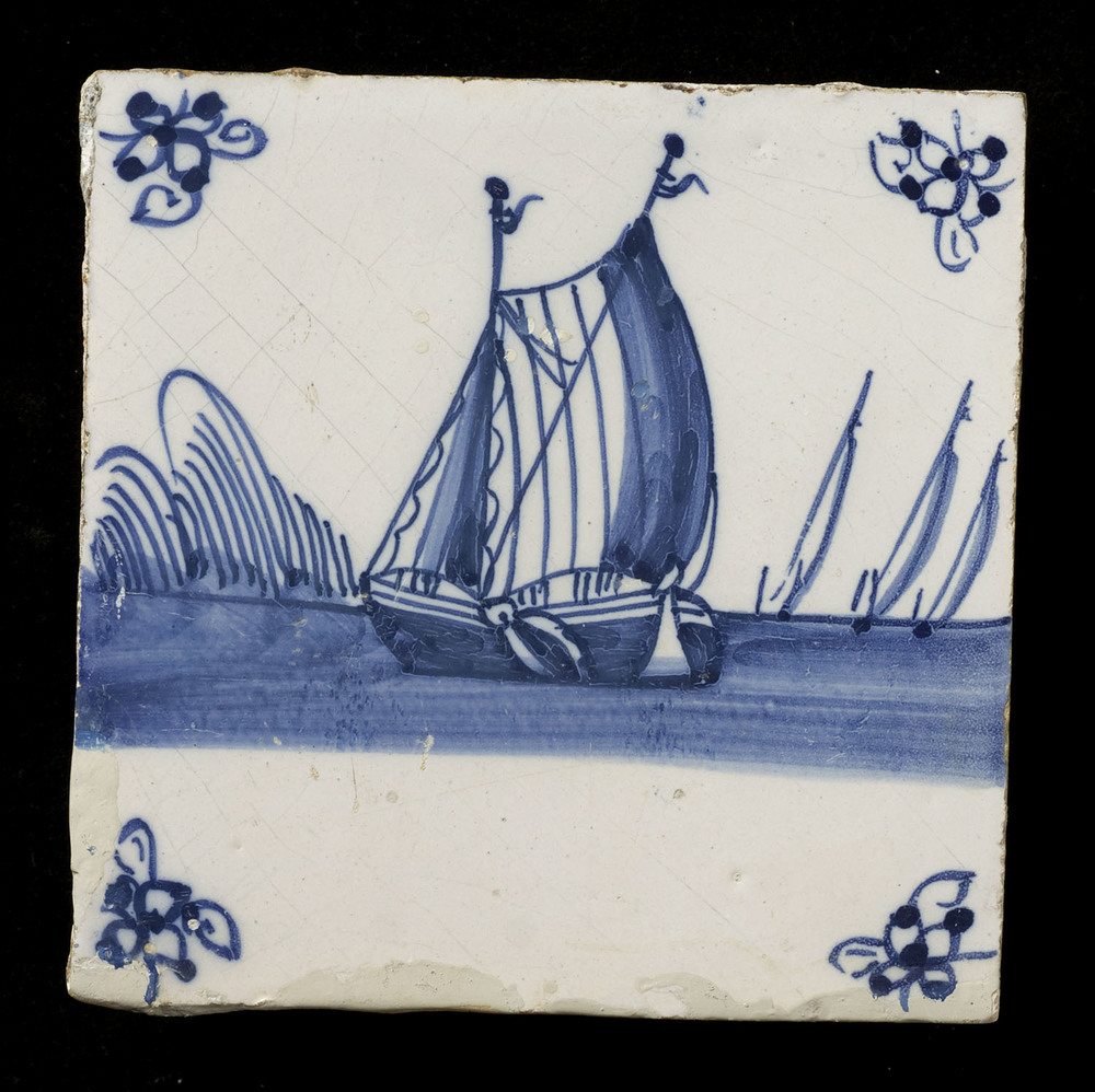 Tegel van keramiek, tinglazuur, voorstellende een sc...