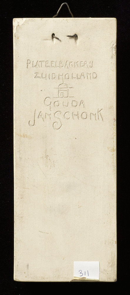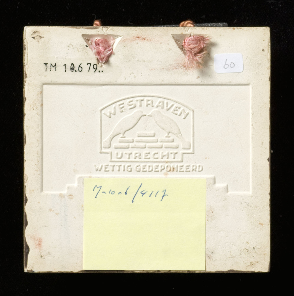 tegel van keramiek met tinglazuur, voorstellende: ru...