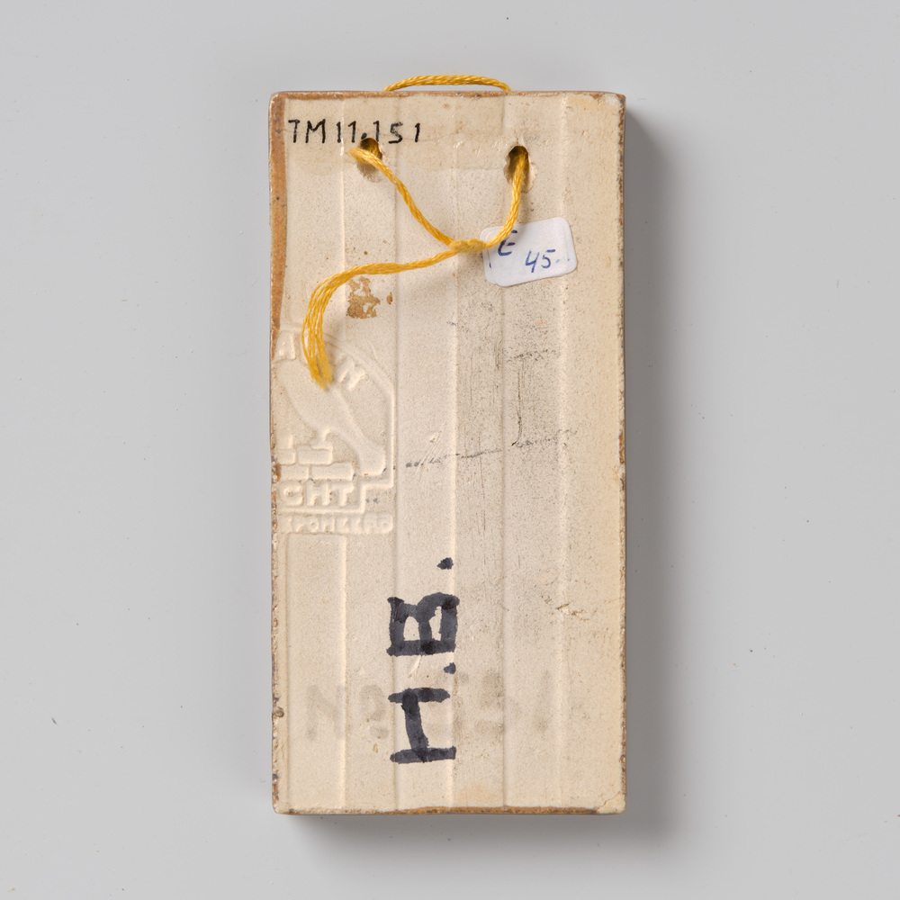 Tegel in cloisonné-techniek, met voorstelling: Schee...