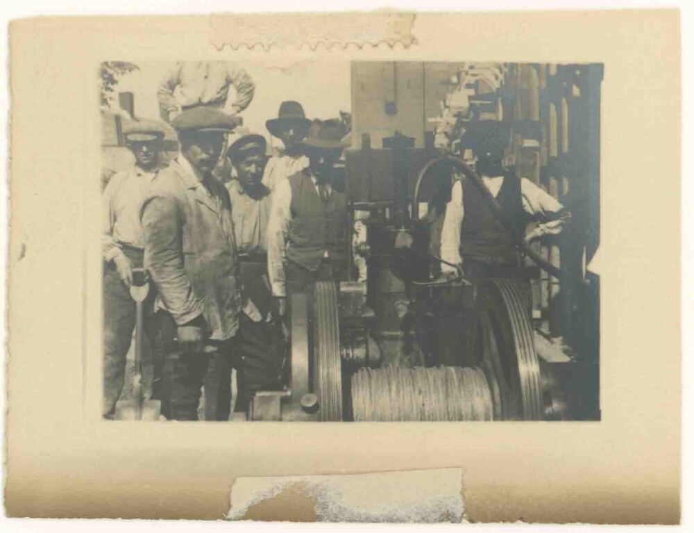 Foto, voorstellende arbeiders bij kabelhaspel te Cul...