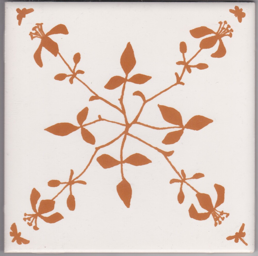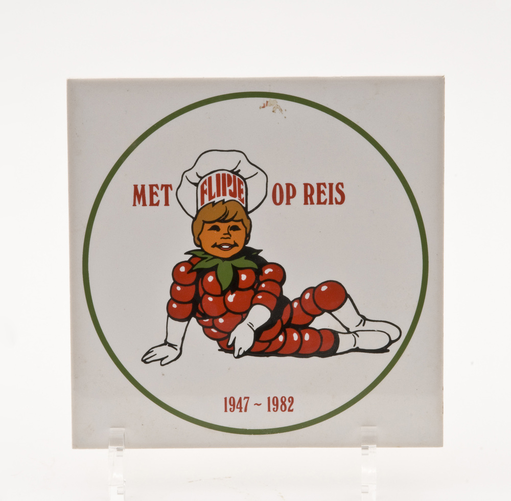 Tegel in zeefdruk, met voorstelling: decor Traveller...