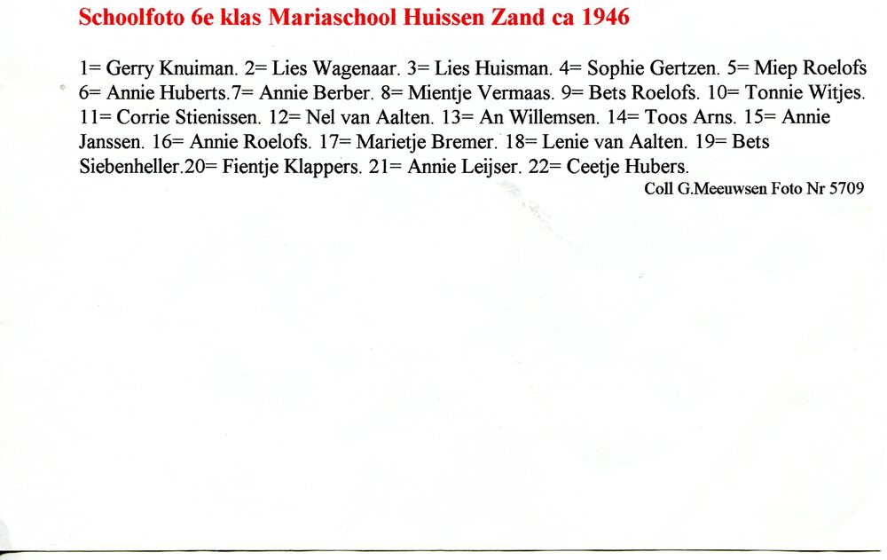Klassenfoto zesde klas Mariaschool Huissen Zand 1946