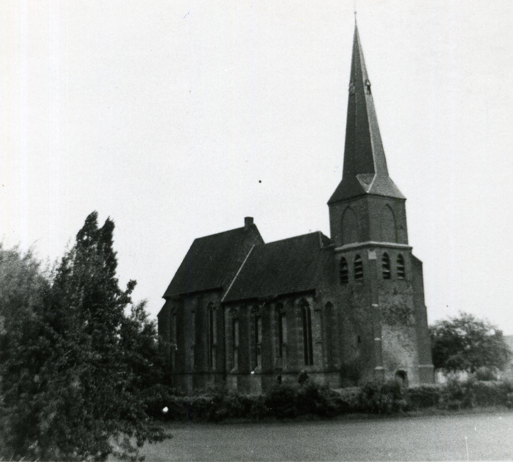 Zwart-wit foto van de Nederlands Hervormde Kerk in A...