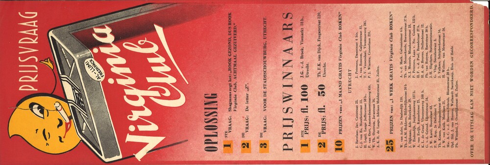 Reclamemateriaal op papier van Virginia Club, de opl...