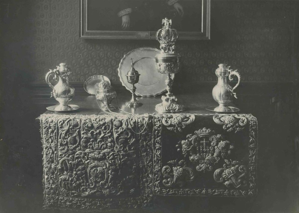 Foto, voorstellende kerkzilver uit diverse kerken te...