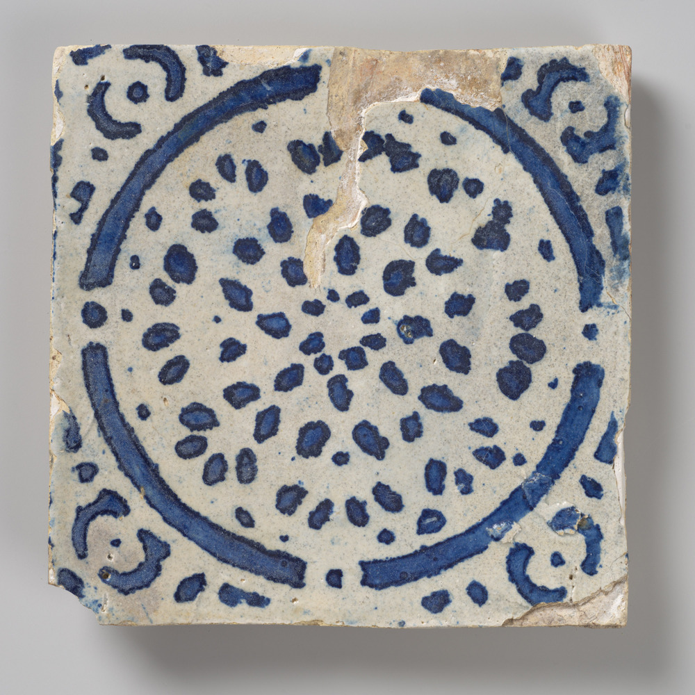 tegel van keramiek met tinglazuur, voorstellende: he...